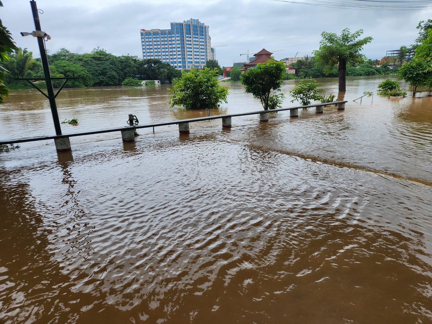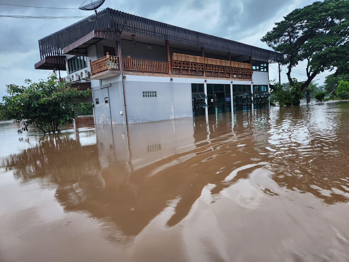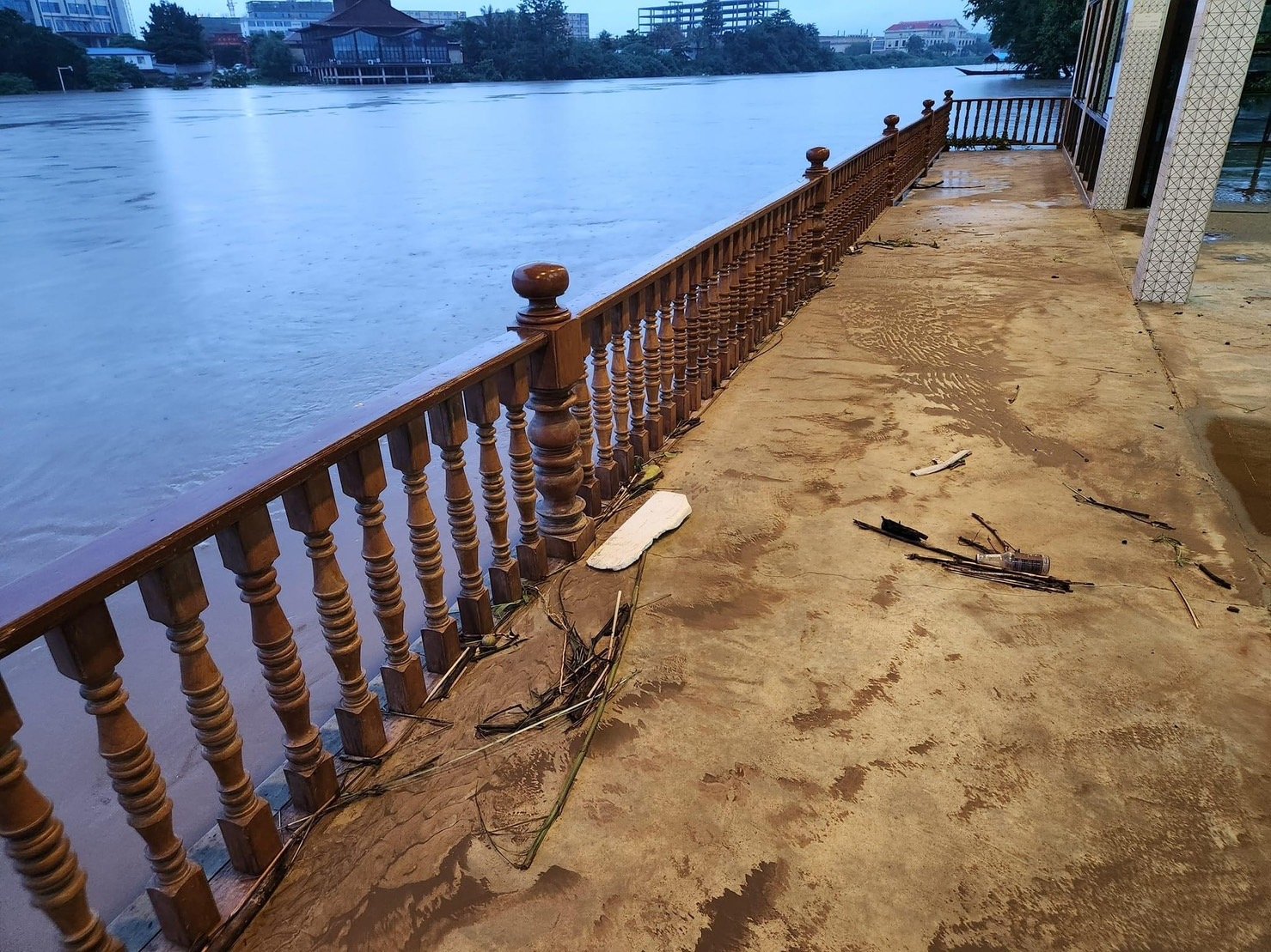 จากขอความที่ระบุในเฟสบุ๊ค “ธงชัย มณีศร” วันที่ 9 ส.ค.66 เขียนว่า “ยังยิ้มได้ จาก 3 ทุ่มถึงเวลานี้ ลดลง 1 ศอกโดยประมาณ เราจะเรียนรู้และจะอยู่ร่วมกับธรรมชาติให้ได้ #สู้สู้นะหมวดธง #ขอขอบคุณทุกๆกำลังใจครับ พร้อมนำภาพน้ำท่วมบ้านริมน้ำ และภาพน้ำท่วมบ้านริมน้ำ และอาคารที่ขายสินค้า และตึกของชาวจีนที่อยู่ตรงข้ามชายแดนไทย ในเขตเมียนมาที่ถูกน้ำท่วมด้วยเช่นกัน