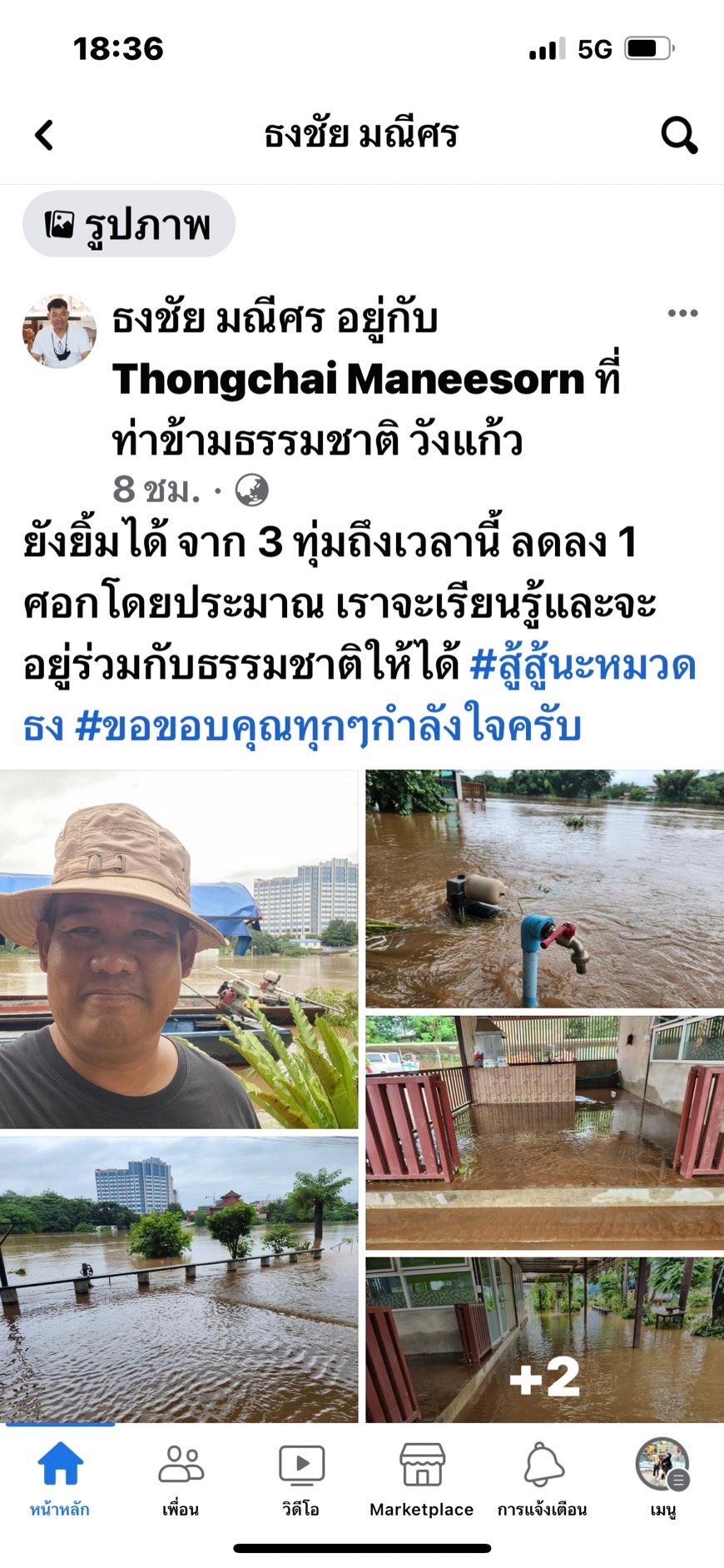 และระบุในเฟสบุ๊ค ที่เผยแพร่ในวันที่ 8 ส.ค.66 ว่า “ชีวิตคนเราก็เหมือนสายน้ำ ต่อให้เจอทางตันอย่างไร น้ำก็ยังคงมีทางไป #เมื่อวานลดไป ศอก วันนี้ทำท่าขึ้นเป็น วา # เดี๋ยวมันก็ผ่านไป สู้สู้นะ หมวดธงชัย