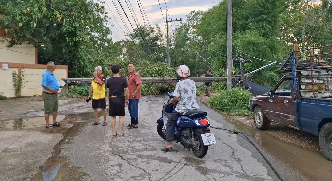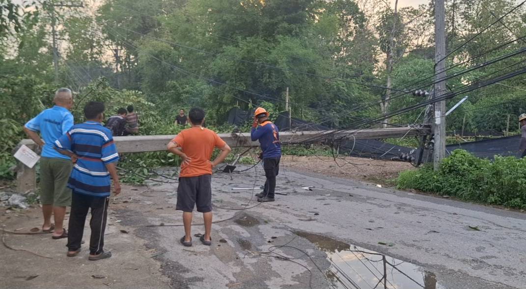 เมื่อเวลา 17.00 น.วันที่ 27 เมษายน 2568 นายกฤษฎา ธรรมแงะ รองนายกองค์การบริหารส่วนตำบลแม่ปะ ได้รับรายงานว่า มีลมพายุฤดูร้อนพัดต้นไม้หักล้ม เสาไฟฟ้าแรงสูง ทับถนนสายแม่ปะใต้-แม่สอด บ้านพระธาตุ หมู่ที่ท 9 ต.แม่ปะ อ.แม่สอด จ.ตาก รถทุกชนิดไม่สามารถวิ่งสัญจรผ่านไปมาได้ จึงได้ประสานงานการไฟฟ้าส่วนภูมิภาคแม่สอดและศูนย์ป้องกันและบรรเทาสาธารณภัย อบต.แม่ปะ นำกำลังลงพื้นที่เพื่อดำเนินการแก้ไขอย่างเร่งด่วน นอกจากนี้ยังพบโรงจอดรถของชาวบ้าน ถูกลมพัดต้นไม้หักล้มทับทำให้รถยนต์เสียหายทั้งคัน