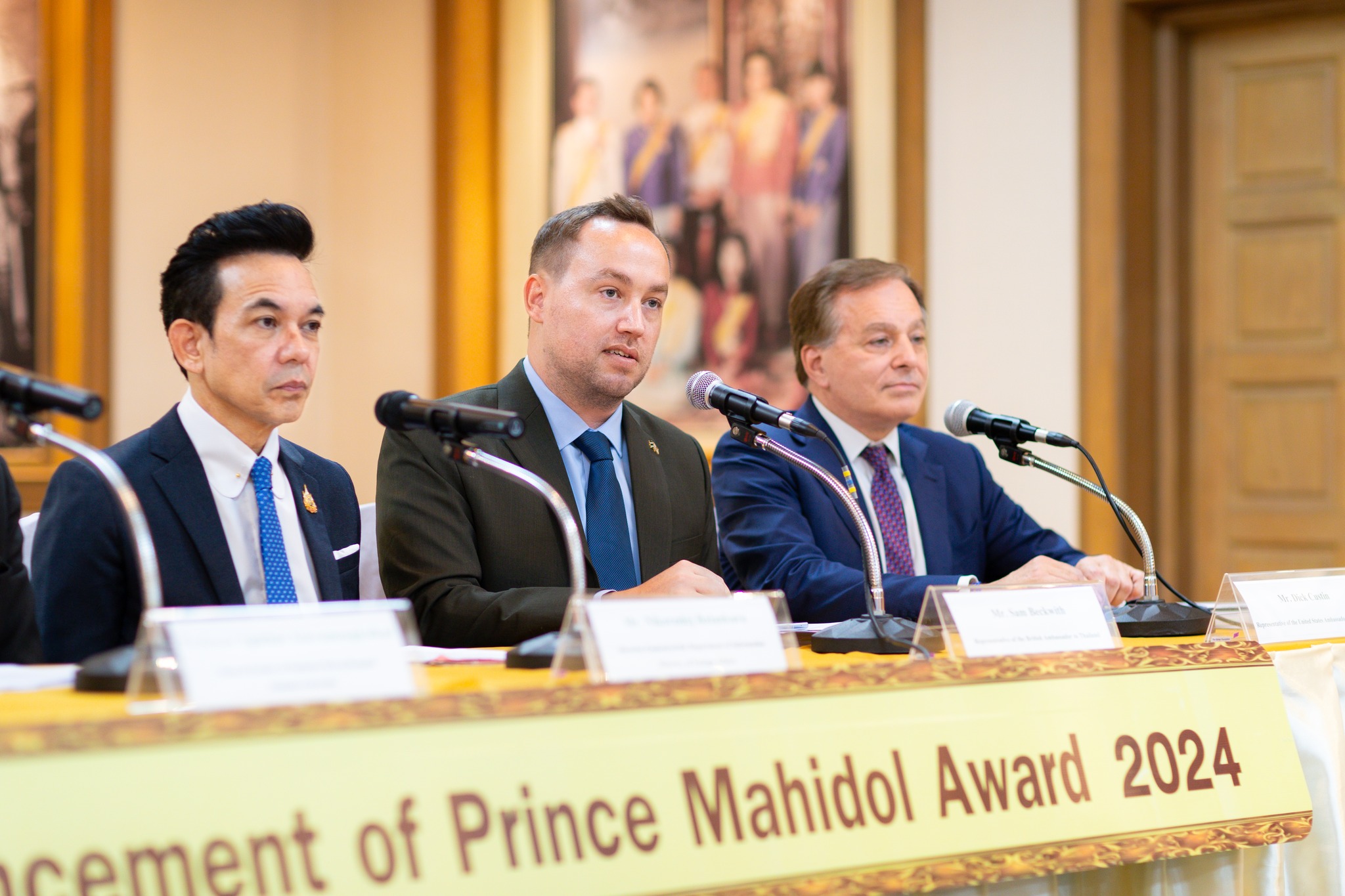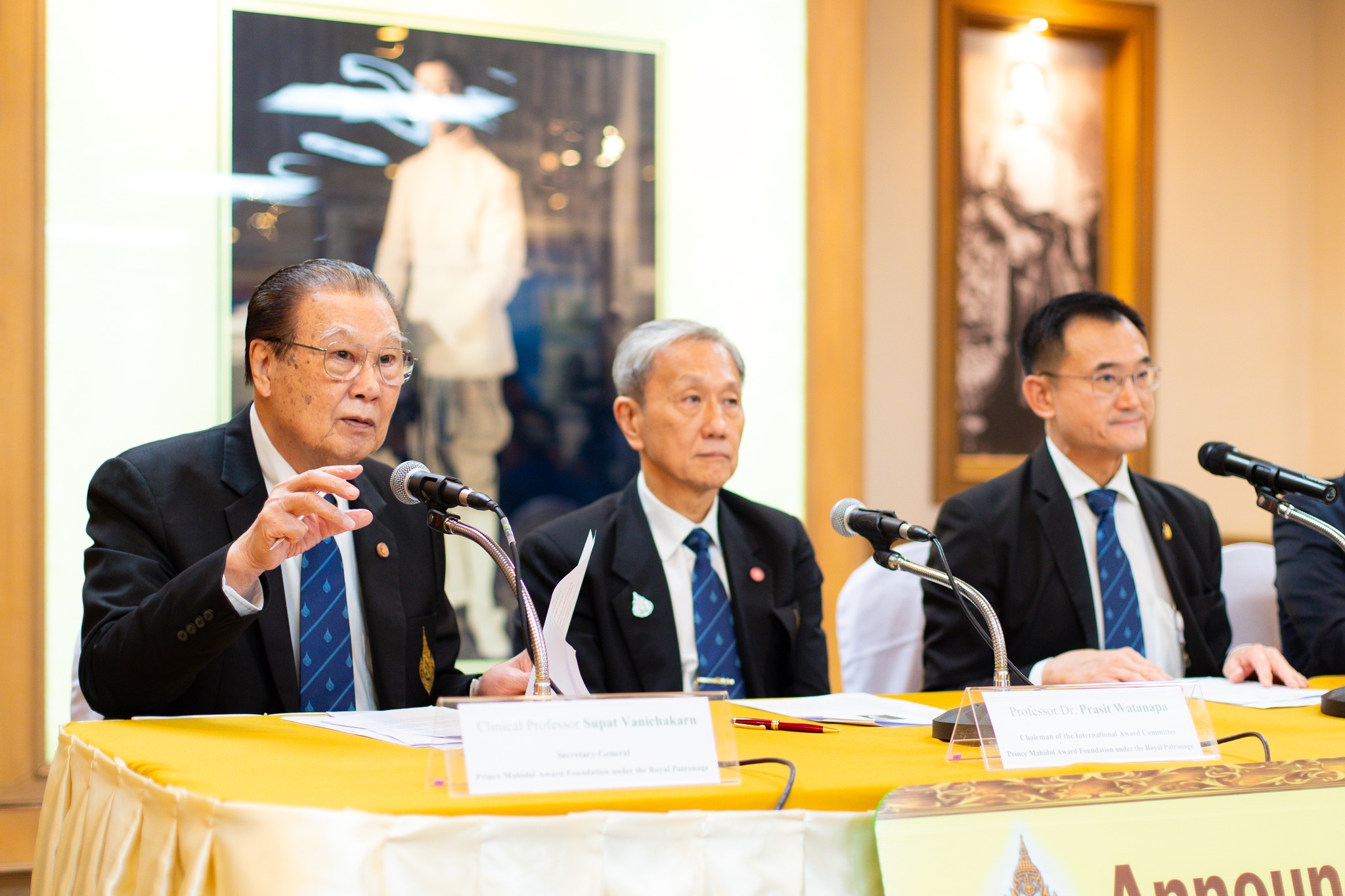 วันนี้ 21 พฤศจิกายน 2567 เวลา 13.30 น. ศาสตราจารย์นายแพทย์อภิชาติ อัศวมงคลกุล คณบดีคณะแพทยศาสตร์ ศิริราชพยาบาล มหาวิทยาลัยมหิดล ในฐานะรองประธานมูลนิธิรางวัลสมเด็จเจ้าฟ้ามหิดล ในพระบรมราชูปถัมภ์ นายนิกรเดช พลางกูร อธิบดีกรมสารนิเทศ กระทรวงการต่างประเทศ ในฐานะประธานคณะอนุกรรมการฝ่ายประชาสัมพันธ์ มูลนิธิรางวัลสมเด็จเจ้าฟ้ามหิดล ในพระบรมราชูปถัมภ์ และศาสตราจารย์ ดร. นายแพทย์ประสิทธิ์ วัฒนาภา ประธานคณะกรรมการรางวัลนานาชาติ มูลนิธิรางวัลสมเด็จเจ้าฟ้ามหิดล ในพระบรมราชูปถัมภ์ ได้ร่วมกันแถลงผลการตัดสินผู้ได้รับพระราชทานรางวัลสมเด็จเจ้าฟ้ามหิดล ครั้งที่ 33 ประจำปี 2567 ณ ห้องสมเด็จพระบรมราชชนก ตึกสยามินทร์ ชั้น 2 โรงพยาบาลศิริราช