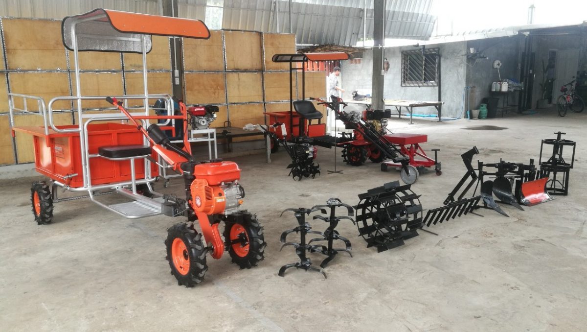 สำหรับ “รถไถจิ๋วจอมพลัง” นั้น ดัดแปลงมาจากรถไถเดินตามขนาดเล็ก ประดิษฐ์อุปกรณ์ต่อพ่วงได้หลายชนิด ซึ่งหากเกษตรกรต้องการใช้งานประเภทไหนก็สามารถเลือกซื้อเฉพาะสิ่งที่จำเป็นต้องใช้ได้ ก็จะสามารถช่วยลดค่าใช้จ่ายไปได้มาก โดยเริ่มต้นจากตัวรถไถ ราคา 14,500 บาท เป็นเครื่องยนต์เบนซิน 7 แรง เดินหน้าได้ 2 เกียร์ ถอยหลัง 1 เกียร์ หากต้องการนำไปทำสวนก็ซื้ออุปกรณ์ต่อพ่วงแค่ล้อพรวน และผ่านแหวก ชิ้นละ 3,900 บาท ก็จ่ายเพียง 22,300 บาท ส่วนถ้าใครต้องการนำไปใช้ทำสวนและทำนาด้วย จะมีชุดสตาร์ทเตอร์ ซึ่งประกอบด้วย ผานไถ ผานแหวก คราด ล้อพรวน ล้อเหล็ก ลงนา ในราคาเริ่มต้นเพียง 34,000 บาท ก็สามารถนำมาใช้ดันเศษวัชพืชออกจากพื้นที่การเกษตร ปรับแต่งหน้าดิน ไถ หรือปรับหน้าดิน พรวนดิน ไถร่อง ไถกลบ ยกร่องแปลงผักในพื้นที่สวน ไร่ นาได้แล้ว เหมือนรถไถนาแบบนั่งขับทั่วไป แต่ประหยัดกว่ามาก เนื่องจากรถไถมินิมีขนาดเล็ก ทำงานได้คล่องตัว แม้ในพื้นที่ที่มีขนาดเล็ก พื้นที่แคบ แถมยังมีน้ำหนักน้อย จึงทำให้ใช้งานง่าย ผู้หญิงก็สามารถใช้งานอย่างสบาย ๆ ทั้งนี้ถ้าหากอยากนำไปทำอย่างอื่นเพิ่มเติม เช่น ตัดหญ้า บรรทุกของ สูบน้ำ ก็สามารถซื้อชุดหัว