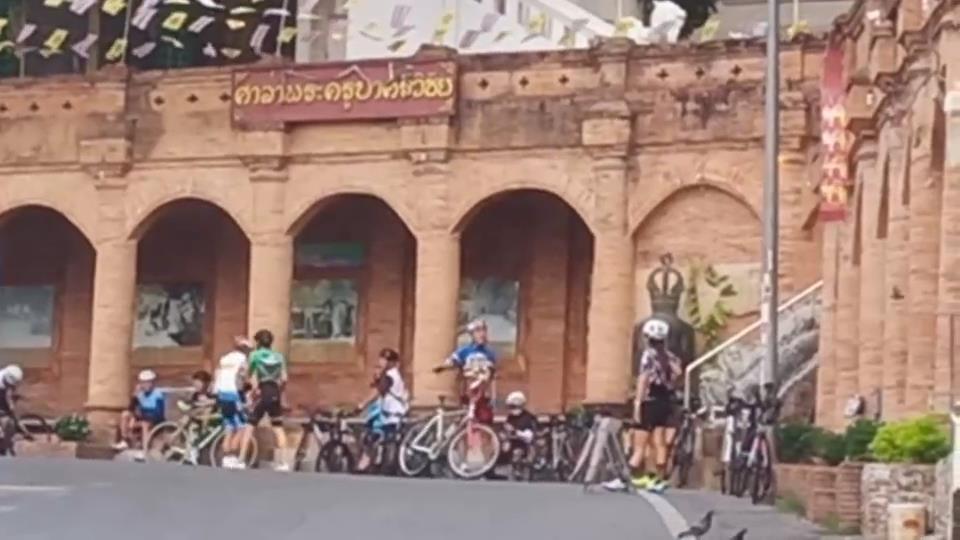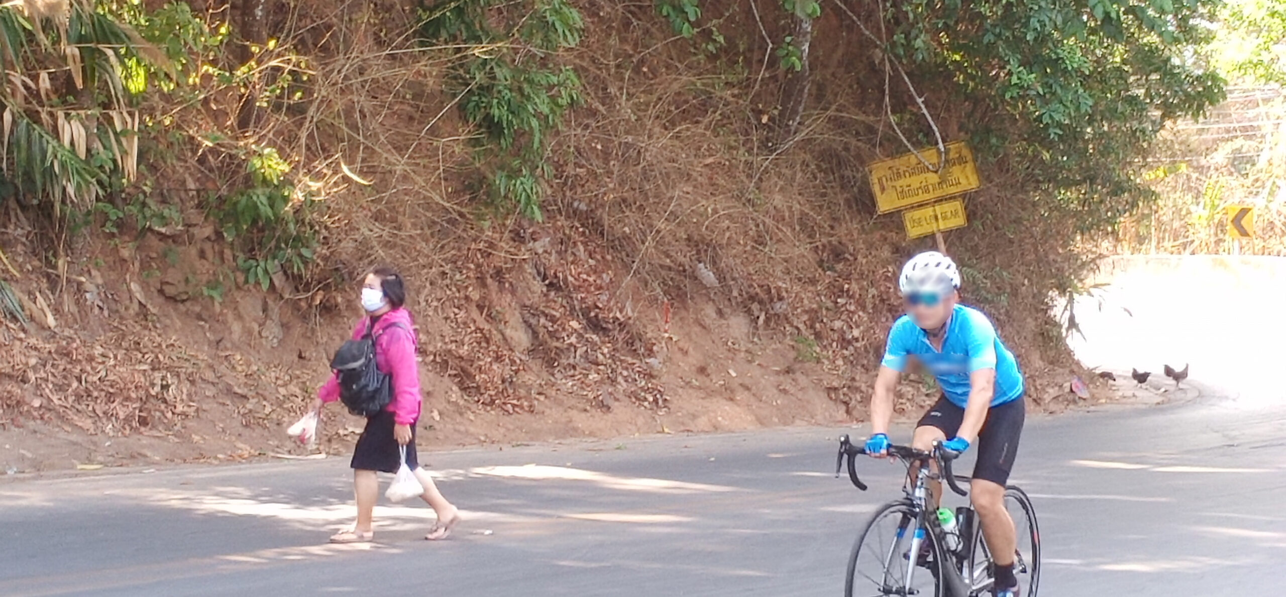 นี่คือภาพขณะที่กลุ่มนักปั่นจักรยานรวมตัวกัน ที่บันไดทางขึ้นวัดพระธาตุดอยสุเทพ หลังจากปั่นจักรยานจากตัวเมืองเชียงใหม่ จากในภาพนักปั่นหลายคน ไม่สวมหน้ากากอนามัย ซึ่งชาวบ้านบนดอยสุเทพ บอกว่าในช่วงเช้าเกือบทุกวันโดยเฉพาะช่วงวันหยุด จะมีกลุ่มนักปั่นทั้งชาวไทย และต่างประเทศ ออกมาปั่นจักรยานเพื่อออกกำลังกายกัน ขึ้นบนดอยสุเทพ ของช่วงเช้ามืดมาสิ้นสุดบริเวณด้านหน้า วัดพระธาตุดอยสุเทพราชวรวิหาร ตำบลสุเทพ อำเภอเมืองเชียงใหม่ ซึ่งพบว่า ส่วนใหญ่จะไม่ค่อยสวมหน้ากากอนามัย ขณะปั่นขึ้นมาจากช่วงโค้งขุนกัน มาจนถึงหน้าวัดพระธาตุ ซึ่งเป็นทางลาดชัน จะใช้แรงใช้ลมหายใจแรงมาก ซึ่งเป็นส่วนหนึ่งหากมีนักปั่นคนหนึ่งคนใด เกิดมีเชื้อไวรัสโควิด-19 อยู่ในตัวแล้วปล่อยออกมา เพราะบางครั้งจะมีการไอจามบ้าง จากอาการเหนื่อยของการปั่นจักรยานขึ้นมา ซึ่งช่วงนี้มีฝนตกลงมาอากาศเย็น อาจทำให้มีเชื้อในอากาศ