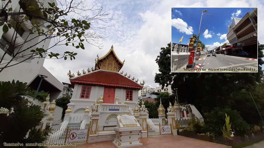 “ถนนท่าแพ มีวัดเก่าแก่คู่นครเชียงใหม่มากมาย ตั้งแต่วัดอุปคุต ซึ่งเป็นวัดเงี้ยวแห่งแรกในเชียงใหม่ เยื้องกันก็จะเป็นบ้านตึก อาคารที่หลวงอนุสารสุนทรสร้างขึ้น ช่วงปี 2443 อาคารแบงค์สยามกัมมาจล (ธนาคารไทยพาณิชย์ สาขาแรกในเชียงใหม่) ไล่เรียงมายังตึกอาคารกิติพานิช อาคารไม้รูปทรงสวยงาม วัดแสนฝางแยกยุโรป (แยกขับสวนทางซ้าย) ซึ่งวัดแสนฝาง ขึ้นชื่อว่าเป็น ชเวดากองแห่งเมืองเชียงใหม่ ซึ่งพญาแสนภู (กษัตริย์องค์ที่ 3) ทรงสร้างขึ้น มีอาคารเก่าแก่ที่พระเจ้าอินทวิชยานนท์ เจ้าผู้ครองนครเชียงใหม่ องค์ที่ 7 ให้รื้อที่ประทับของพระเจ้ากาวิโรรสสุริวงศ์ (เจ้าชีวิตอ้าว) สร้างเมื่อปี พ.ศ. 2420 วัดบุพพารามเยื้องกับวัดแสนฝาง วัดที่พญาแก้วโปรดให้สร้างเมื่อ พ.ศ. 2039 ในชุมชนชาวมอญแห่งแรกในเชียงใหม่ เป็นต้น 2 ฟากฝั่งถนนท่าแพ มีเรื่องราวบอกเล่าที่น่าสนใจทั้งประวัติศาสตร์ วัด วิถีชุมชนชาวพม่า จีน มอญ เงี้ยว ไทใหญ่และคนเมือง”