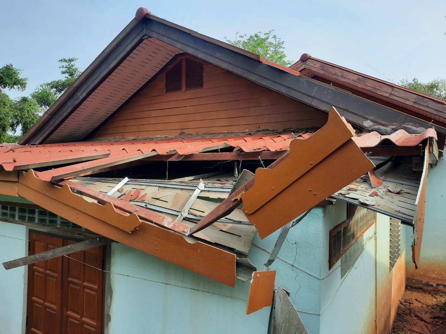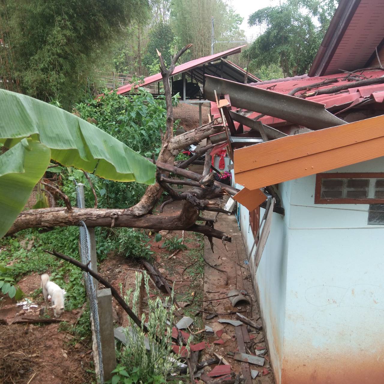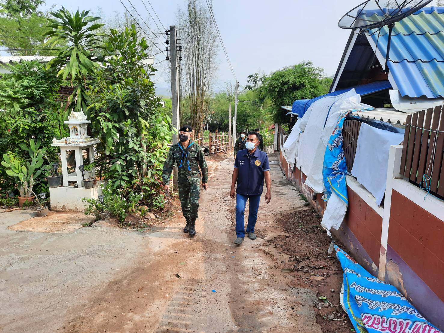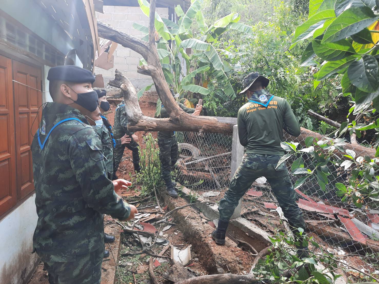 หน่วยเฉพาะกิจ กรมทหารราบที่ 7 นำกำลังเข้าไปสำรวจความเสียหายจากพายุฤดูร้อน ก่อนที่จะให้การช่วยเหลือประชาชนที่ถูกพายุฤดูร้อน ถล่มจนหลังคาบ้านเสียหายหลายหลัง