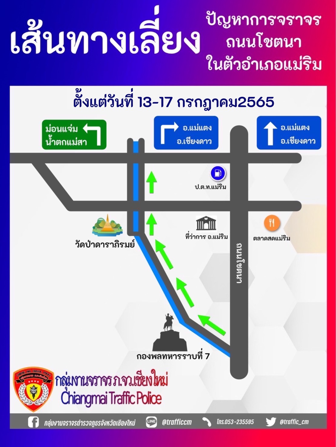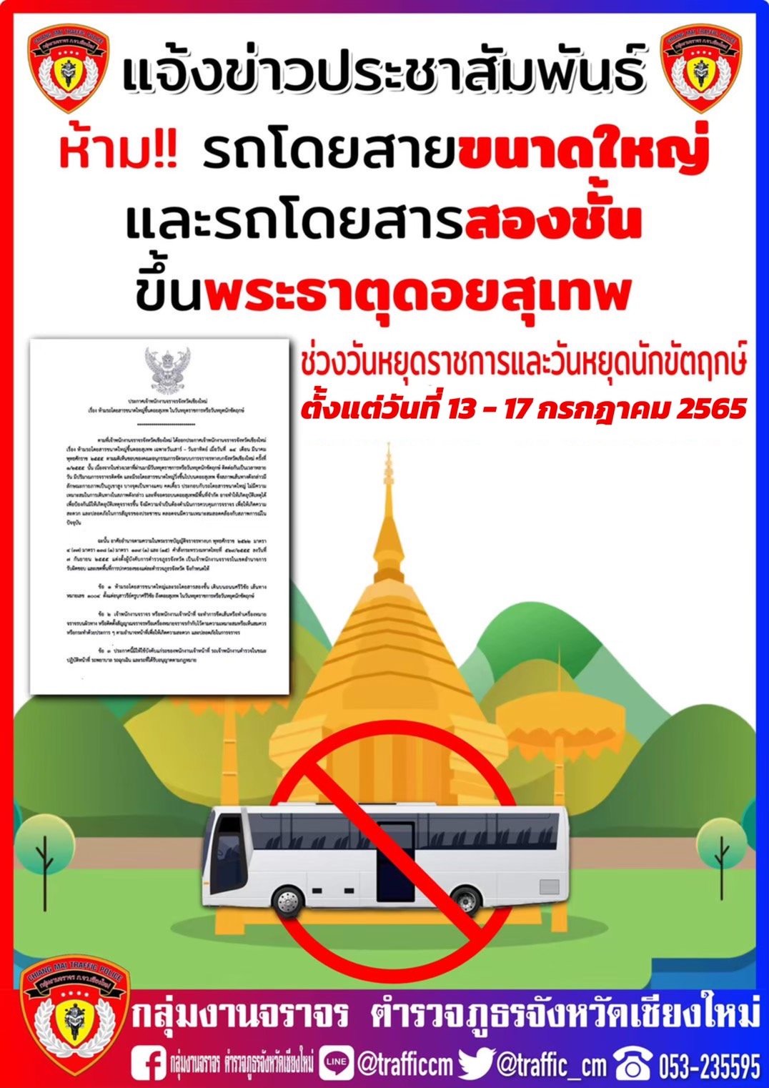 วันหยุดต่อเนื่อง 5 วัน ช่วงระหว่างวันที่ 13-17 กรกฎาคม 2565 วันอาสาฬหบูชาและวันเข้าพรรษา(วันหยุดชดเชย)จราจรเชียงใหม่พร้อมอำนวยความสะดวกการจราจรให้กับผู้ใช้รถใช้ถนนได้รับความสะดวก-รวดเร็ว-ปลอดภัยในการเดินทาง