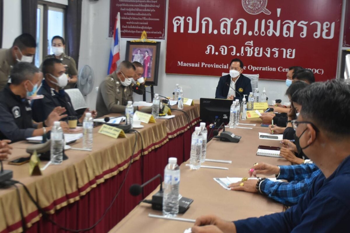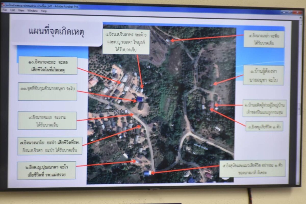 ขณะที่ห้องประชุม สภ.แม่สรวย นายภาสกร บุญญลักษม์ ผวจ.เชียงราย ได้เดินทางมารับฟังรายงานสถานการณ์ เพราะเหตุดังกล่าวเป็นเหตุการณ์อุกฉกรรจ์ เป็นที่สนใจต่อคนทั่วประเทศ โดยมี พล.ต.ต.ชินวิช วิชัยธนพัฒน์ ผบก.ภ.จ.เชียงราย พ.ต.อ.โสภณ ม่วงเฟื่อง ผกก.สภ.แม่สรวย ร่วมรายงานสถานการณ์ที่เกิดขึ้น และหลังจากเสร็จสิ้นการประชุมรับฟังสรุปเหตุการณ์ ทางคณะ ผวจ.เชียงราย และเจ้าหน้าที่ตำรวจจะเดินทางไปที่บ้านป่าเกี๊ยะ ม.18 ต.ท่าก๊อ อ.แม่สรวย เพื่อดูสถานที่เกิดเหตุ และพบปะสอบถามให้กำลังใจญาติผู้เสียชีวิตและผู้บาดเจ็บ