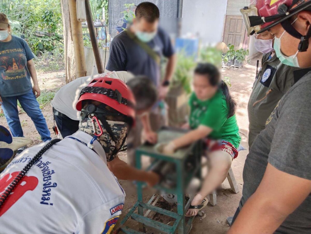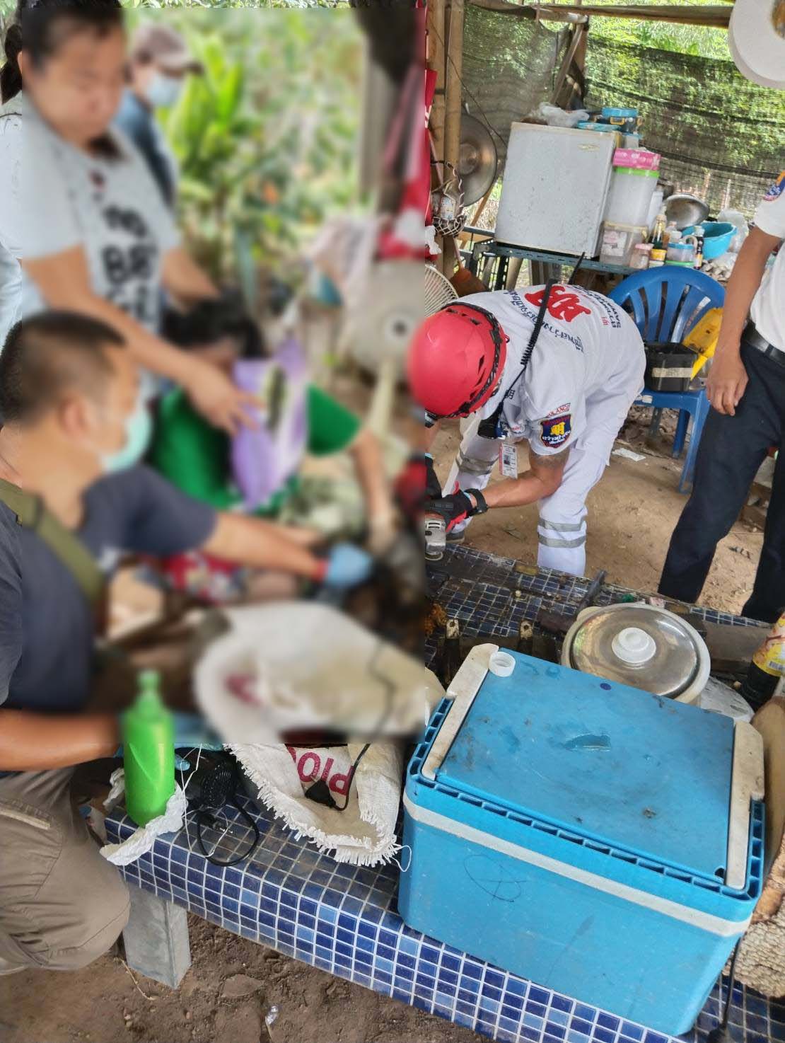 กู้ภัยฯ ใช้อุปกรณ์ช่วยเหลือแม่ค้าไส้อั่วถูกเครื่องบดเนื้อกลืนนิ้ว
