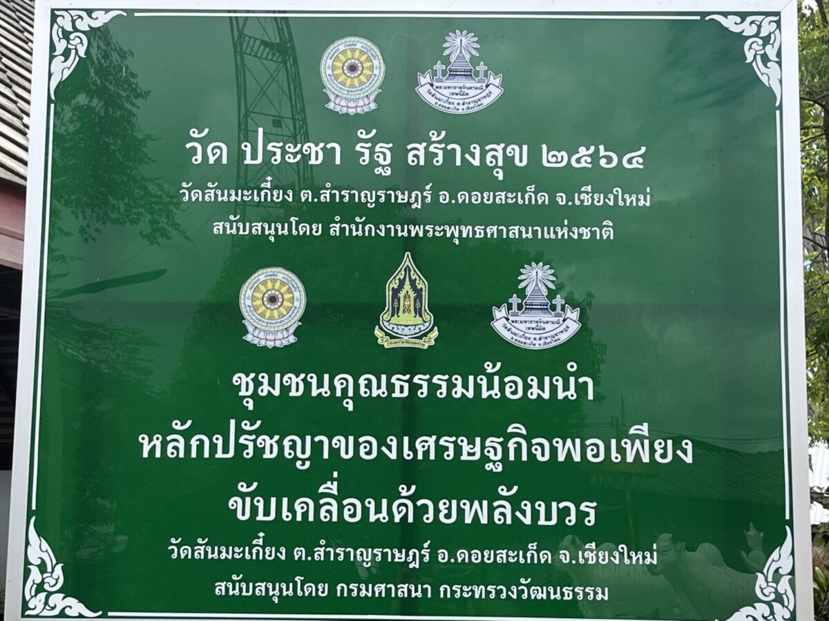 พระครูปลัด ทวีวัฒน์ อินฺทวณฺโณ ผู้ช่วยเจ้าอาวาสวัดพระธาตุดอยสะเก็ด พระอารามหลวง และที่ปรึกษาเจ้าอาวาสวัดสันมะเกี๋ยง กล่าวว่า วันสันมะเกี๋ยง เป็นวัดโบราณเก่าแก่ กำลังบูรณะ มีพระสงฆ์จำนวน 32 รูป พระสงฆ์ได้ปลูกผักไว้ที่วัด เป็นอาหารให้พระสงฆ์ และแจกฟรีชาวบ้านที่ยากจนเพื่อสูภัยโควิด-19 ให้มารับผักผลไม้ที่วัดปลูกได้ฟรีอีกด้วย ได้ปฏิบัติตามโครงการโคกหนองนาโมเดล และโครงการเศรษฐกิจพอเพียงตามแนวพระราชดำริในหลวงอีกด้วย แลทางวัดได้เปิดโอกาสให้ชาวบ้านนำผลผลิตทางการเกษตรมาจำหน่ายในวัดเพื่อสร้างรายได้อีกทางหนึ่งด้วย ชาวบ้านก็จะนำพืชผักตามฤดูกาลมาขาย เช่น ผักต่างๆ ไข่ไก่ไข่เป็ด และหน่อไม้ เป็นต้น