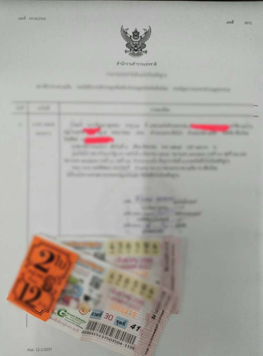 เมื่อเวลา 19.30 น.วันที่ 1 ส.ค.2565 นางธัญผล (ขอสงวนนามสกุล) อายุ 61 ปีเป็นแม่บ้าน อยู่บ้านสันโป่ง อ.แม่ริม จ.เชียงใหม่ พร้อมสลากกินแบ่งรัฐบาล งวดประจำวันที่ 1 ส.ค. 2565 หมายเลข 436594 รางัลที่ 1 จำนวน 2 ใบ เข้าพบต่อ ร.ต.อ.พงษ์พิพัฒน์ นันทวิสุทธิ์ พนักงานสอบสวนสภ.แม่ริม เพื่อลงบันทึกประจำวันไว้เป็นหลักฐาน