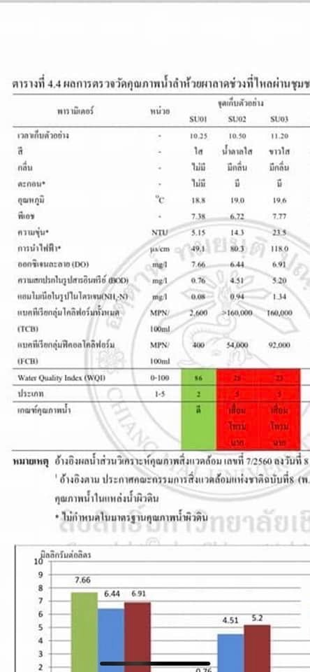 ทางด้านนายประดิษฐ์ สีใส ผู้อำนวยการสำนักงานิ่งแวดล้อม และควบคุมมลพิษที่ 1 เชียงใหม่ เปิดเผยว่า เบื้องต้นทางเจ้าหน้าที่ได้ทำความเข้าใจกับุณหมอที่เป็นผู้โพสต์แล้วว่า เอกสารและข้อมูลที่ใช้มาอ้างอิงนั้นเป็นงานวิจัยเก่า ซึ่งตอนนั้นห้องปฏิบัติการยังไม่มีเครื่องมือที่ใช้ตรวจอิโคไล ดังนั้นการนำค่าผลตรวจ Fecal Coliform Bacteria (FCB) ของงานวิจัยนี้ยังไม่สามารถชี้ชัดว่าเป็นอิโคไลได้ อีกทั้งอิโคไลน์จากข้อมูลที่ชี้แจงเป็นมาตรฐานการตรวจคุณภาพน้ำดื่มไม่ใช่น้ำผิวดินอย่างที่บอก ซึ่งตามปกติแล้วก็สามารถพบอิโคไลน์ได้จากแหล่งน้ำธรรมชาติ จึงเป็นการไม่ปลอดภัยอยู่แล้วที่จะนำน้ำจากแหล่งน้ำธรรมชาติมาดื่มกินได้ทันที