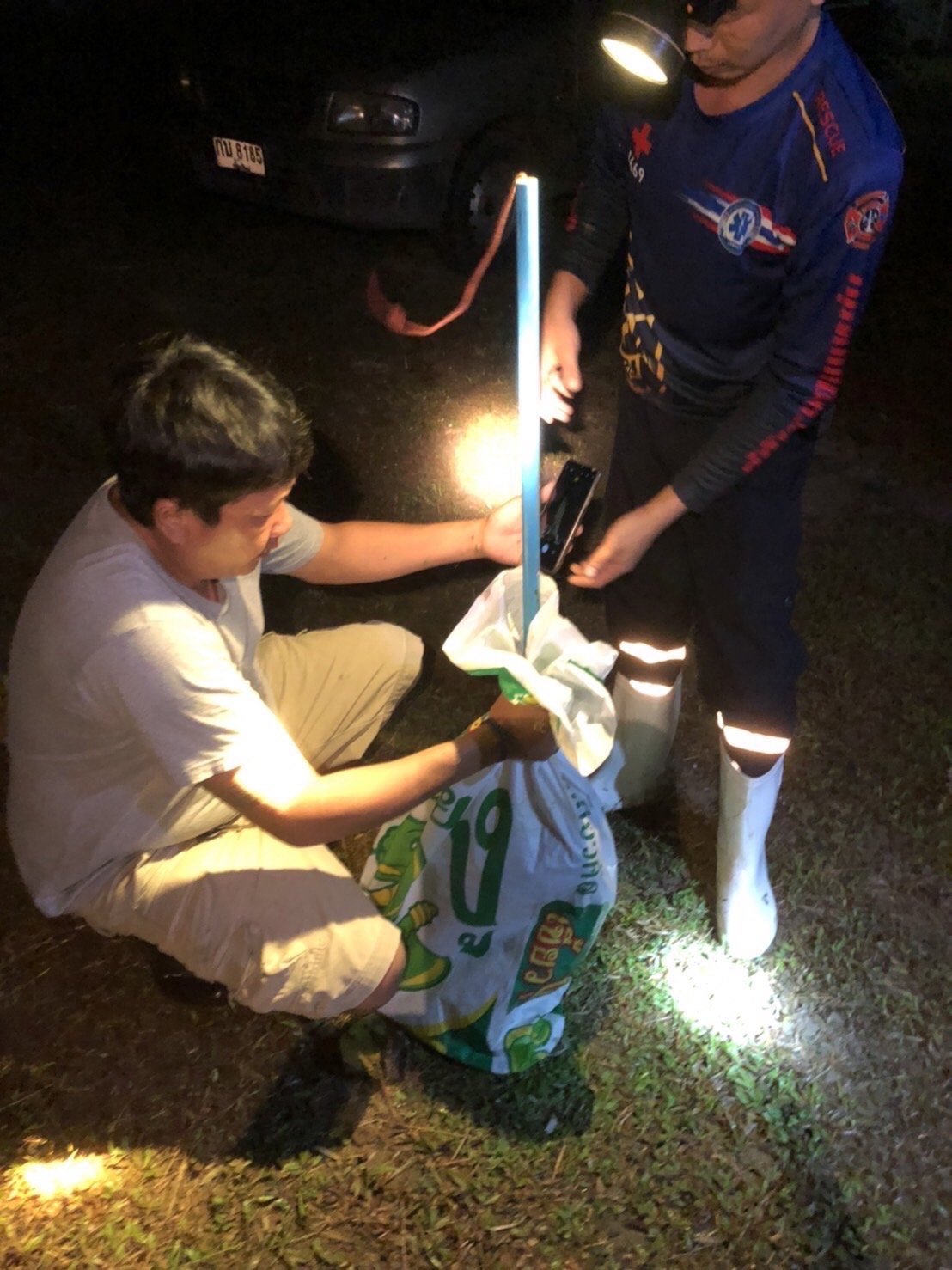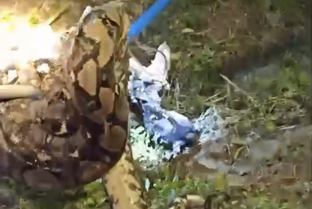 ต่อมามีเจ้าหน้าที่ของทางเทศบาลตำบลหนองแหย่ง 3-4 นาย พร้อมผู้ช่วยผู้ใหญ่บ้าน เดินทางไปยังบ้านหลังที่ได้รับแจ้ง ปรากฎว่างูเหลือมตัวดังกล่าวได้เลี้อยเข้าไปซ่อนตัวในท่อซีเมนต์สำหรับระบายน้ำ เจ้าหน้าที่จึงใช้ไฟฉายส่องดูพบว่ากำลังขดตัวอยู่ด้านในท่อ จึงได้ทุบท่อออกและเตรียมใช้ไม้คีบงูที่เตรียมมาจัดการคีบงูออกมาจากท่อ พบว่าเป็นงูเหลือมตัวอวบอ้วนยาวประมาณ 4 เมตร ที่ยังอ้าปากขู่บรรดาเจ้าหน้าที่ที่มาจับตัว ก่อนที่จะนำงูใส่กระสอบปุ๋ยเพื่อนำไปปล่อยสู่ธรรมชาติต่อไป