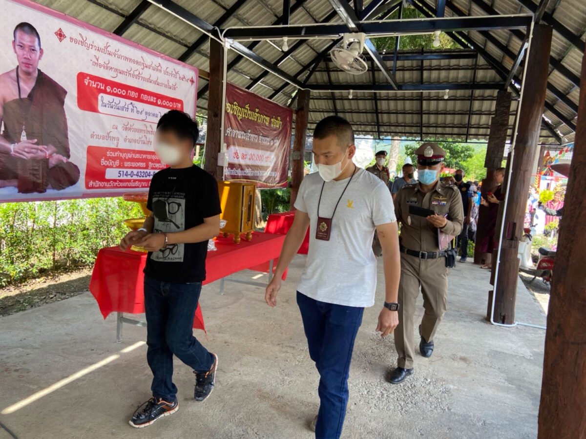 ต่อมาชุดสืบสวนสภ.บ้านโฮ่ง สืบทราบว่าคนร้ายรายนี้คือนายธนูฯ จึงเข้าทำการจับกุมตัวในห้องพักหอพักไม่มีชื่อ ซอยข้างร.ร.ธีรกานต์ฯบ้านห้วยกาน หมู่1 ต.บ้านโฮ่ง อ.บ้านโฮ่ง ได้คาที่นอน นำตัวมาสอบสวนให้การรับสารภาพว่าเป็นคนร้าย ที่ไปงัดตู้บริจาคที่วัดบ้านโฮ่งหลวง,วัดห้วยกาน และวัดห้วยแทงโพธิญานอกแหล่งท่องเที่ยวเชิงอัตถลักษณ์ชื่อดังของอำเภอบ้านโฮ่ง ได้เงินมาชื้อยาบ้ามาเสพและเที่ยวเตร่