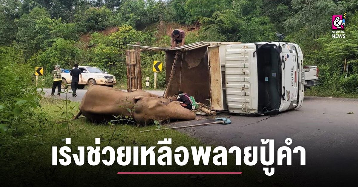 นายธีรภัทร ตรังปราการ ประธานสมาคมสมาพันธ์ช้างไทย เปิดเผยว่า ช้างเชือกนี้มีชื่อว่าพลายคำ อายุประมาณ 50 ปี เป็นช้างตกงานที่กลับไปอยู่กับเจ้าของที่บ้านห้วยผักกูด อ.แม่แจ่ม ในช่วงโควิด 19 กระทั่งปางช้างหลายแห่งเริ่มกลับมาเปิดหลังจากการท่องเที่ยวเริ่มฟื้นตัว เจ้าของช้างจึงตั้งใจนำช้างกลับไปหางานทำตามปางช้างในจังหวัดเชียงใหม่ แต่ด้วยมีเงินน้อย ไม่มีเงินจ้างรถบรรทุกขนาดใหญ่ที่จะมีค่าขนส่งครั้งละกว่า 30,000 บาท จึงไปขอใช้รถญาติพี่น้องในหมู่บ้านเป็นรถสิบล้อ โดยนำช้างขึ้นไปอยู่บนหลังรถและออกเดินทางเมื่อช่วงเช้า แต่การขนส่งช้างด้วยรถขนาดเล็กเป็นไปด้วยความยากลำบาก ช้างน้ำหนักมาก ประกอบกับทางโค้งมีมาก ทำให้ตัวช้างเหวี่ยงไปมาจนทำให้รถโคลงเคลง คนขับพยายามชะลอรถแต่เอาไม่อยู่จนกลิกคว่ำ ทำให้ช้างกระเด็นออกจากรถ นอนนิ่งหมดสติบนถนน เจ้าของและคนขับรถพยายามเรียกปลุกจนฟื้นคืนสติ แต่ก็ไม่สามารถขยับตัวไปมาได้ โชคดีทีมสัตวแพทย์สถาบันคชบาลแห่งชาติ เดินทางไปรักษาช้างป่วยในพื้นที่ใกล้เคียงได้รับแจ้งจึงเข้ามาช่วยเหลือ ให้ยาระงับปวดและพยายามประคบเย็น จนทำให้มันลุกขึ้นยืนได้ แต่ก็พบว่ามีอาการเจ็บขาขวาด้านหลังมากจนขยับไม่ได้ ต้องยกขาลอยขค้น ไม่สามารถลงน้ำหนักได้