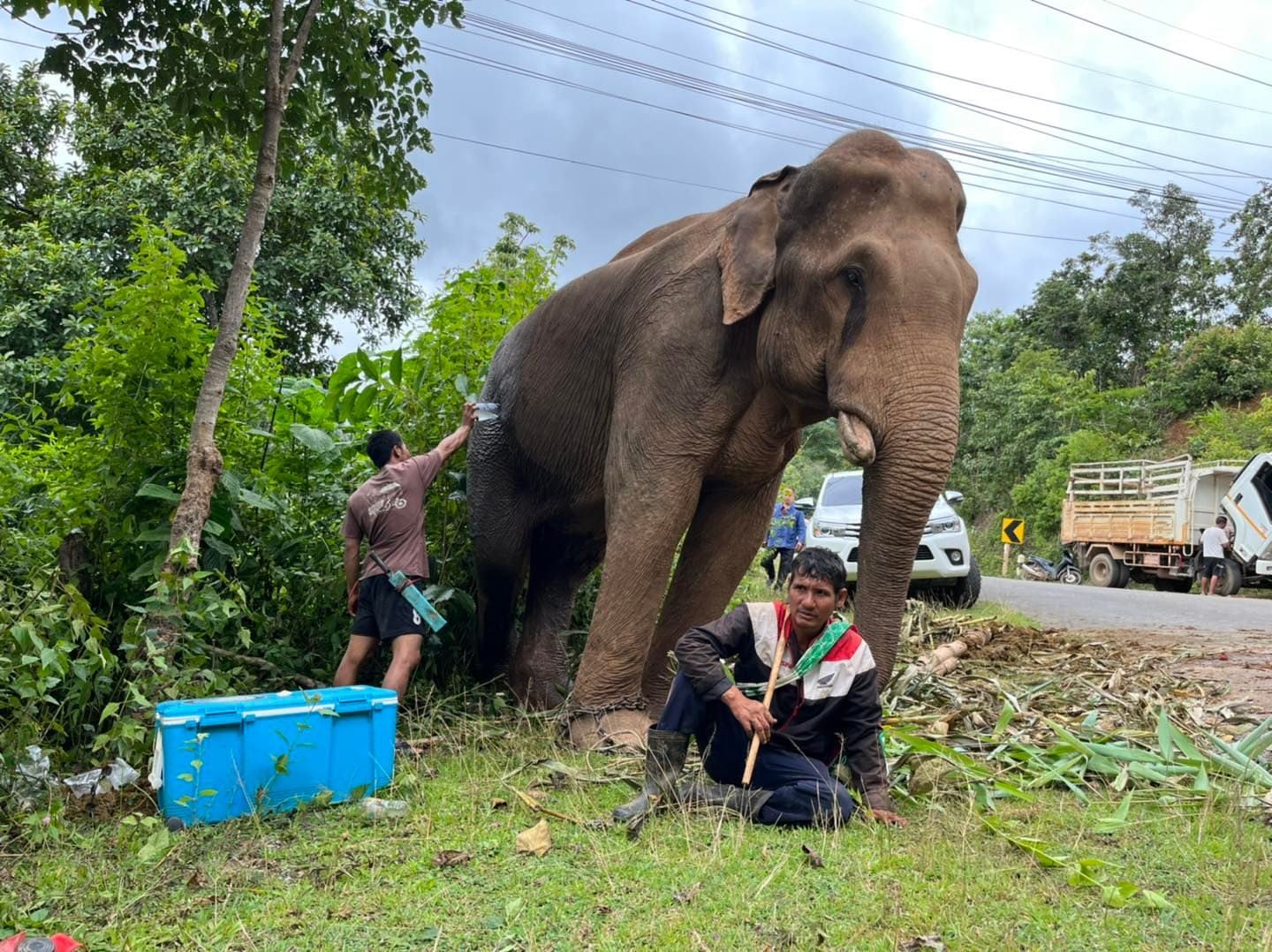 ในส่วนของสมาคมสหพันธ์ช้างไทยซึ่งมีภารกิจในการช่วยนเหลือนำส่งช้างป่วยทั่วไทย ได้รับการประสานงานและได้ส่งรถกู้ภัยช้างไปช่วยเหลือ เป็นรถสิบล้อขนาดใหญ่ที่มีถาดยกระบบไฮโดรลิกและมีคอกให้ช้างยืนโดยไม่แกว่งไปมา โดยจะไปรับตัวช้างจากจุดเกิดเหตุนำส่งโรงพยาบาลช้าง สถาบันคชบาลแห่งชาติ อ.ห้างฉัตร จ.ลำปาง คาดว่ารถกูภัยจะไปถึงราวห้าโมงเย็นของวันนี้และจะใช้เวลาเดินทางเกือบ 5 ชั่วโมง โดยล่าสุดมีรายงานว่าช้างเริ่มหิว ถือเป็นสัญญาณดี