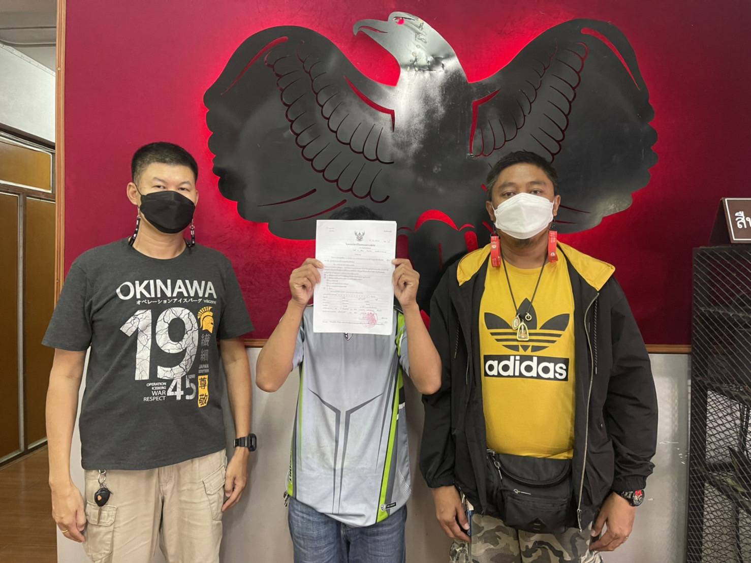 จึงได้เดินทางไปตรวจสอบบริเวณดังกล่าว เมื่อไปถึงบริเวณอาคารลานจอดรถ สถานที่จับกุม พบชายคนหนึ่งซึ่งมีลักษณะตำหนิรูปพรรณคล้ายกับชายที่ปรากฏตามสำเนาภาพถ่ายตามหมายจับ เจ้าหน้าที่ตำรวจชุดจับกุมจึงได้เข้าไปแสดงตัวเป็นเจ้าหน้าที่ตำรวจพร้อมทั้งแจ้งยศ ชื่อ และตำแหน่งให้ทราบ และได้สอบถามถึงชื่อและนาม สกุลจริง และตรวจสอบเอกสารบัตรประจำตัวประชาชนของชายไทยคนดังกล่าว ทราบชื่อ นามสกุลจริงว่าชื่อ นายอ่องทวย ลุงซู่ อายุ 24 ปี สัญชาติเมียนมาร์ และพบว่าการอนุญาตให้อยู่ในราชอาณาจักรได้สิ้นสุดลงตั้งแต่วันที่ 28 กรกฎาคม 2564 จากนั้น เจ้าหน้าที่ตำรวจได้นำหมายจับของศาลจังหวัดเชียงใหม่ ที่ จ. 784/2565 ลงวันที่ 9 กันยายน 2565
