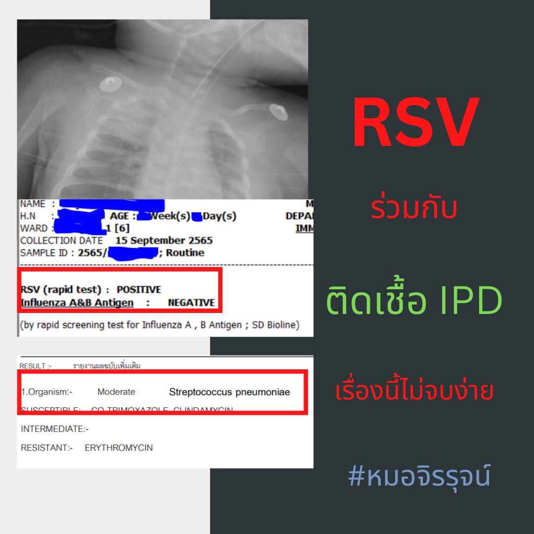 20 ก.ย.65 นพ.จิรรุจน์ ชมเชย กุมารแพทย์เชี่ยวชาญโรคระบบหายใจ กลุ่มงานกุมารเวชกรรม โรงพยาบาลมหาราชนครราชสีมา โพสต์ผ่านเฟซบุ๊กเกี่ยวกับประเด็น ติดเชื้อ RSV ร่วมกับ IPD โดยคุรหมอระบุว่า