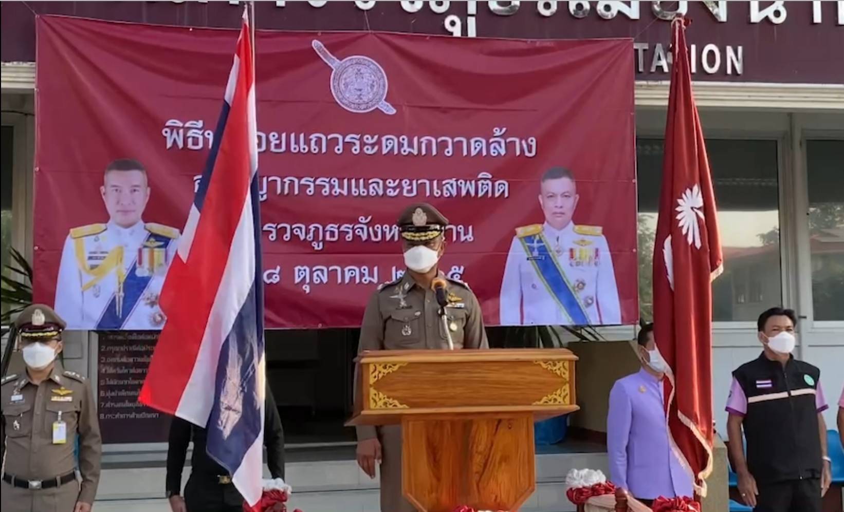 ด้าน พล.ต.ต.ปิยะพันธ์ ภัทรพงศ์สินธุ์ ผบก.จ.น่าน กล่าวว่า ทางตำรวจภูธรจังหวัดน่านได้สนธิกำลังปิดล้อมตรวจค้นตามนโยบายของสำนักงานตำรวจแห่งชาติ เพื่อค้นหาผู้เสพผู้ขายที่เป็นปัญหาใหญ่ของชุมชนและสังคม ที่สร้างความเดือดร้อนวุ่นวาย โดยจำทำการปิดล้อมตรวจค้นตรวจค้นอย่างต่อเนื่องเพื่อความสงบสุขของชุมชนและสังคม