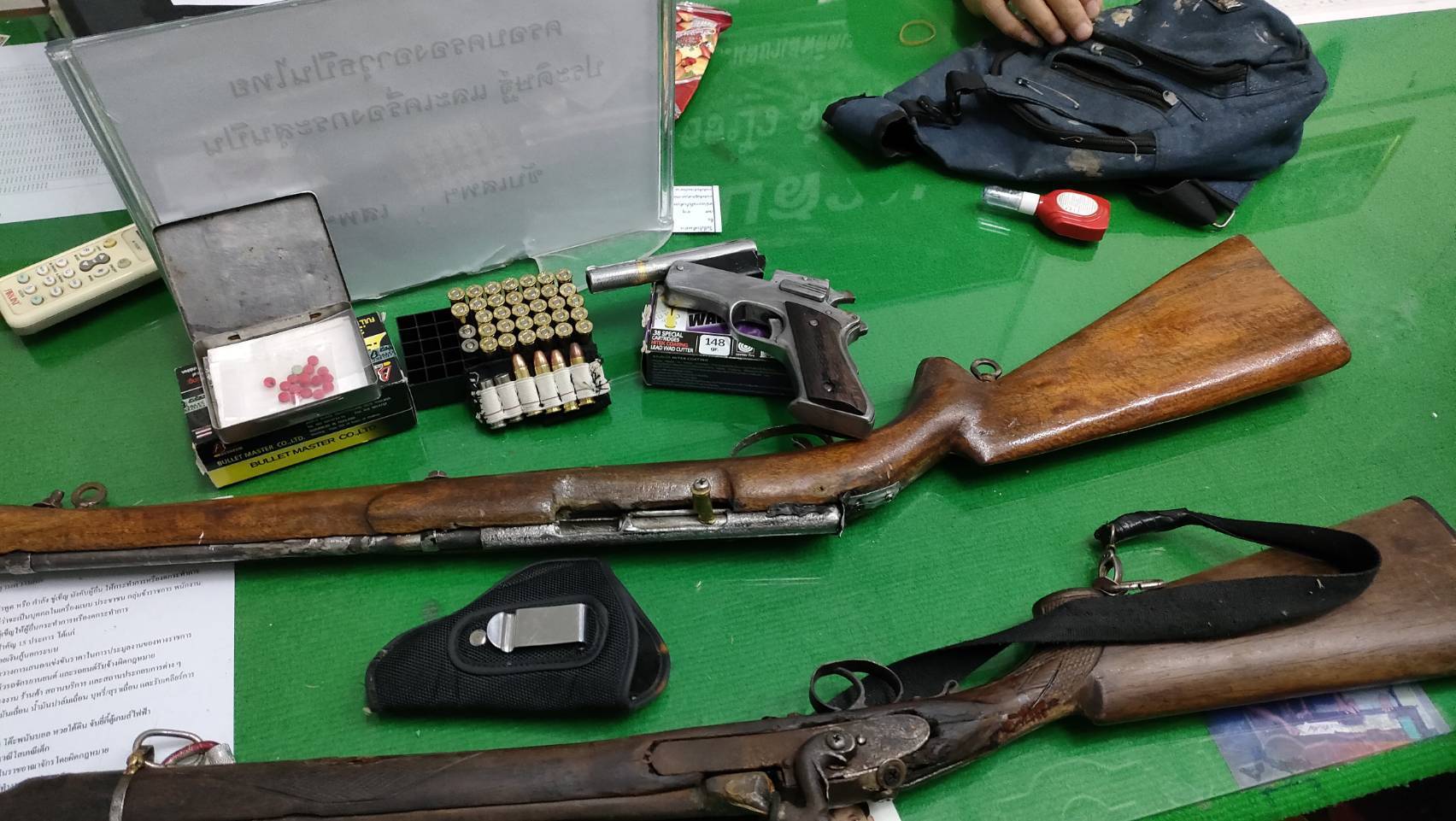 สนธิกำลังเปิดปฏิบัติการปิดล้อมตรวจค้นเครือข่ายยาเสพติด และอาวุธปืน ในพื้นที่ 6 เป้าหมาย ผู้ต้องหาตีไม่เนียนหลบใต้ที่นอนไม่รอด