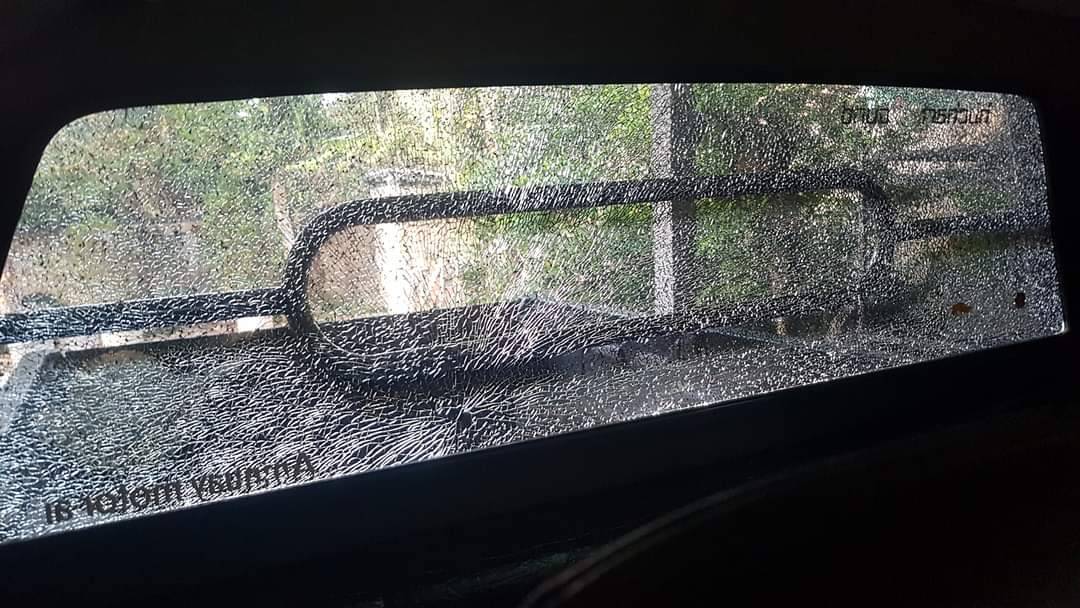 เตือนภัยแก๊งปาหิน ปาหินใส่รถกระบะชาวบ้านพังเสียหาย เหตุเกิดแถวบ้านแม่ผึ้ง ต.เสริมขวา อ.เสริมงาม