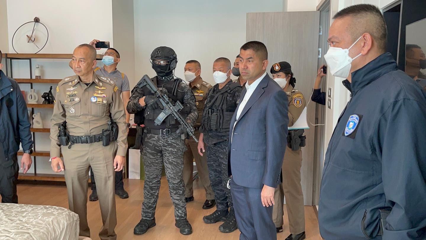 จากนั้นเมื่อนำบัตรประจำตัวประชาชนที่ตรวจยึดได้นำมาตรวจสอบกับสารบบทะเบียนราษฎร์ ของกรมการปกครอง ปรากฏว่าเลขประจำตัวประชาชนดังกล่าว นายทะเบียนออกให้กับบุคคลอื่น(ใบหน้าไม่ตรงกัน) จึงเชื่อว่าเป็นการปลอมบัตร ประจำตัวประชาชน จากนั้นจึงแจ้งข้อกล่าวหา MR.LIN YIAN ว่า “ปลอมบัตรประจำตัวประชาชน” นำตัวผู้ต้องหาพร้อมของกลาง ส่งพนักงานสอบสวน สน.อุดมสุข เพื่อดำเนินคดีตามกฎหมาย และจากการตรวจสอบ Mr. LI XIAOQIANG (นาย ลี เสี่ยว เฉียง) ปรากฏว่าอยู่ในราชอาณาจักรเกินกำหนดเวลาที่ ได้รับอนุญาต จึงแจ้งข้อกล่าวหา “เป็นบุคคลต่างด้าวอยู่ในราชอาณาจักรโดยการอนุญาตสิ้นสุด” และ พบว่า Mr.LIN PEIJIE (นาย ลิน ปิงเจอ) ครอบครองสุราต่างประเทศหลายยี่ห้อเกิดกว่าที่กฎหมายกำหนดให้ครอบครอง จึงแจ้งข้อกล่าวหา ให้ทราบว่า “มีไว้ในครอบครองซึ่งสินค้าที่เป็นสินค้าที่ไม่ได้เสียภาษีหรือเสียภาษีไม่ครบถ้วน” และนำตัวผู้ต้องหาทั้ง สองคนพร้อมของกลาง ส่งพนักงานสอบสวนสน.ทองหล่อ เพื่อดำเนินคดีตามกฎหมายต่อไป ซึ่งจากการปฏิบัติการปิดล้อมตรวจค้นในครั้งนี้ เจ้าหน้าที่ตำรวจได้ตรวจยึดรถยนต์หรู, เงินสด, รถจักรยานยนต์บิ๊กไบค์ นาฬิกาหรู กระเป๋าแบรนเนม และทรัพย์สินต่างๆ รวมมูลค่าทรัพย์สินหลายร้อยล้านบาท ซึ่งจะได้ดำเนินการตรวจสอบความ ถูกต้องและความเชื่อมโยงกับคดีอาชญากรรมออนไลน์ที่ได้มีการแจ้งความไว้ในระบบการรับแจ้งความออนไลน์ของสำนักงาน ตำรวจแห่งชาติหรือไม่ เพื่อดำเนินการตามกฎหมายต่อไป