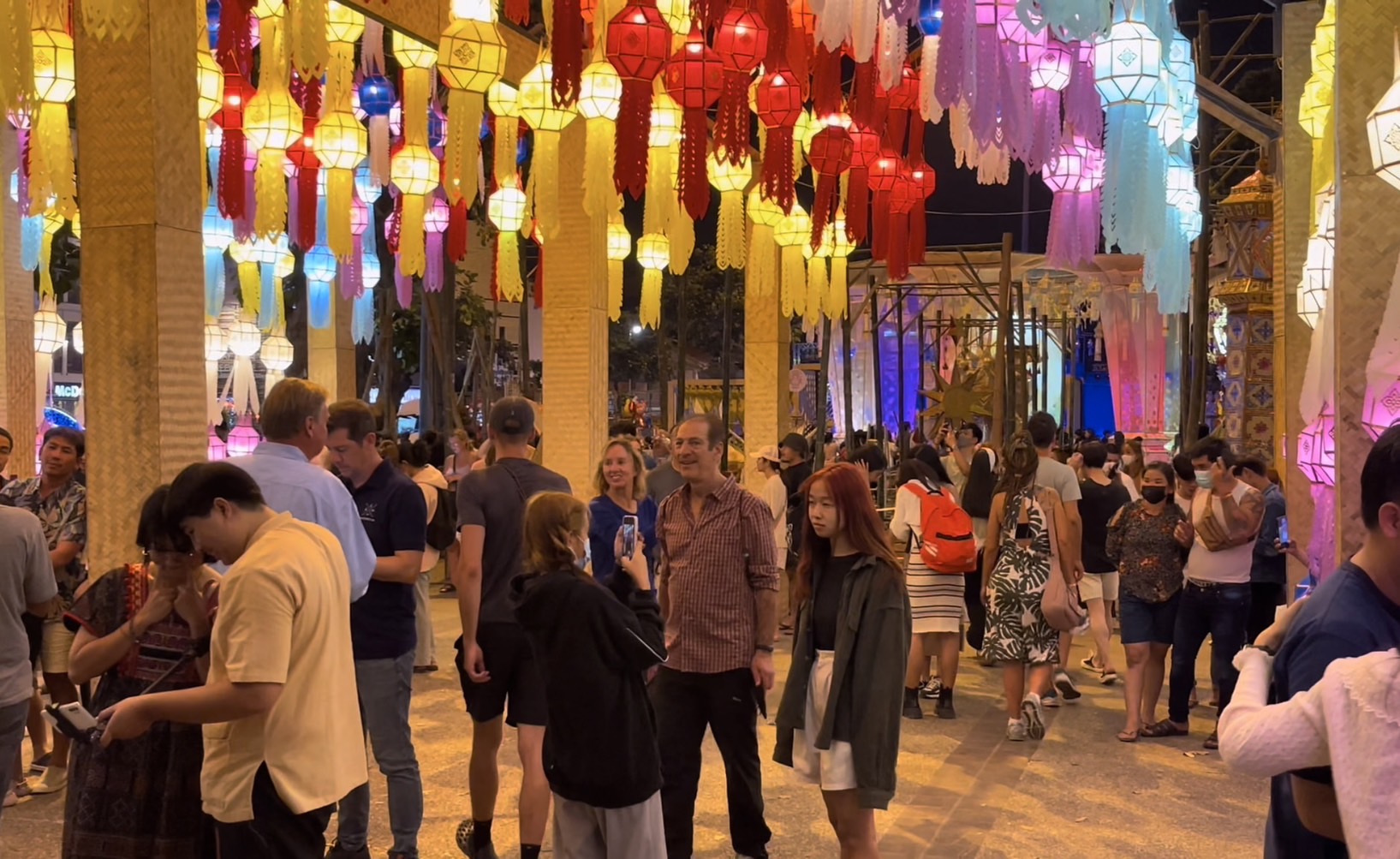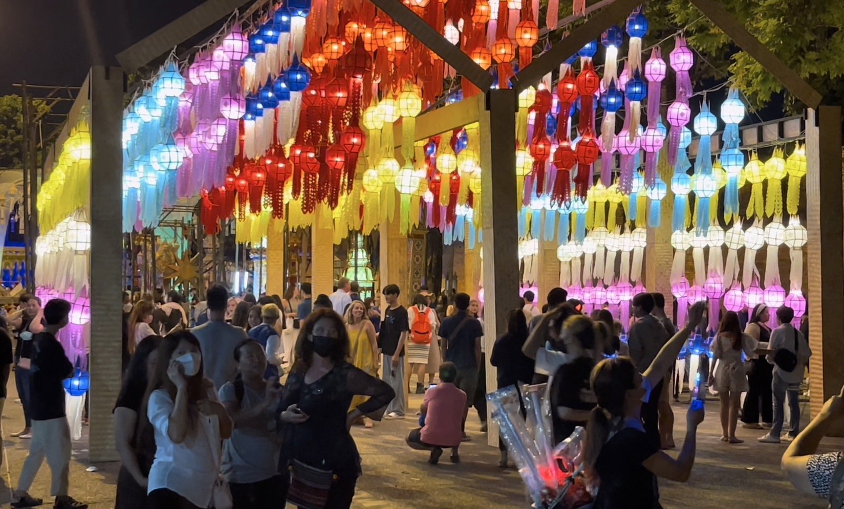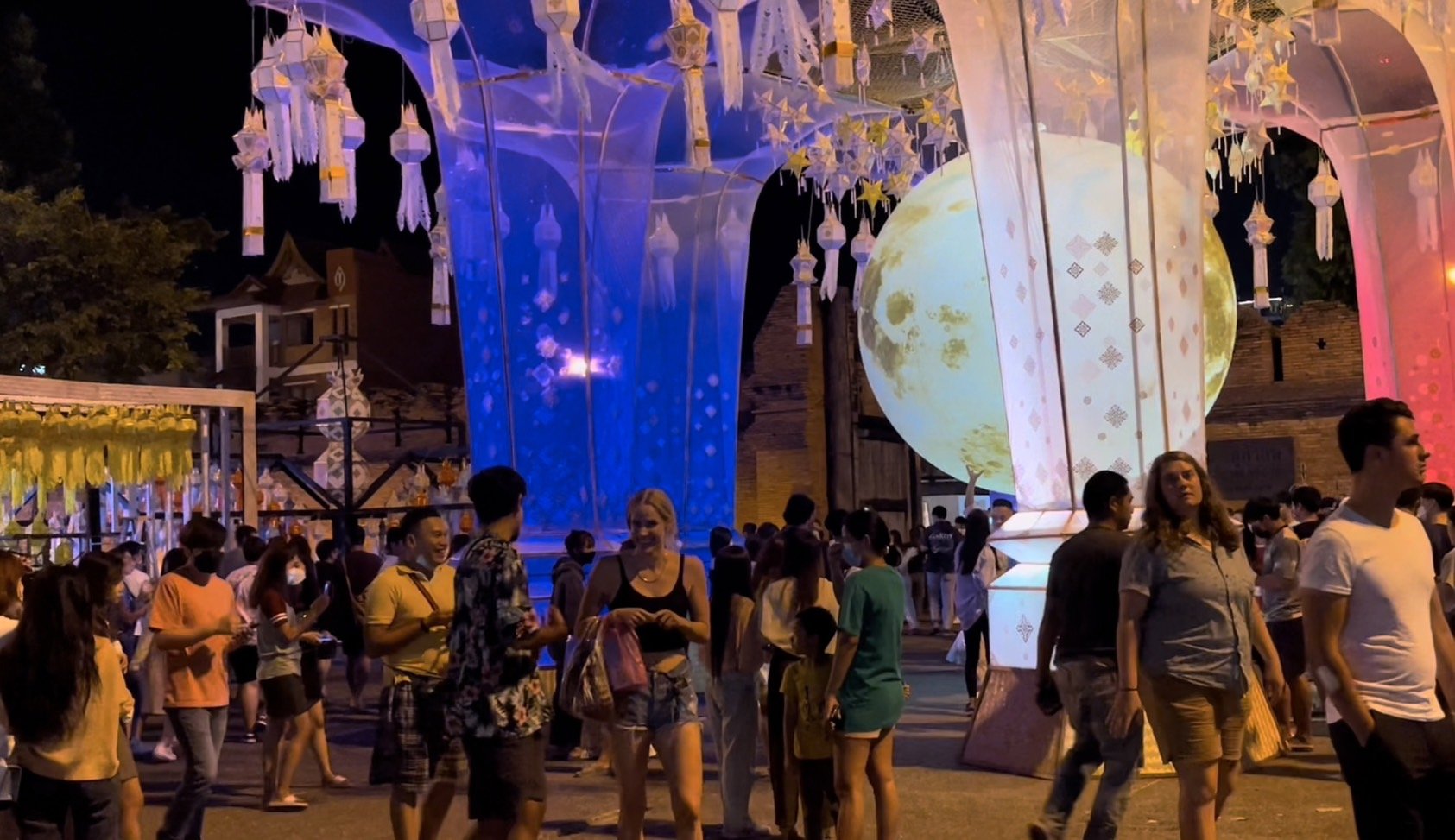 เชียงใหม่คึกคัก นทท.ทั้ง ไทย-เทศ เนืองแน่นต้อนรับเทศกาลยี่เป็ง วันแรกพรุ่งนี้ ด้านประตูท่าแพ คนแห่ชมแสงสีเต็มลาน