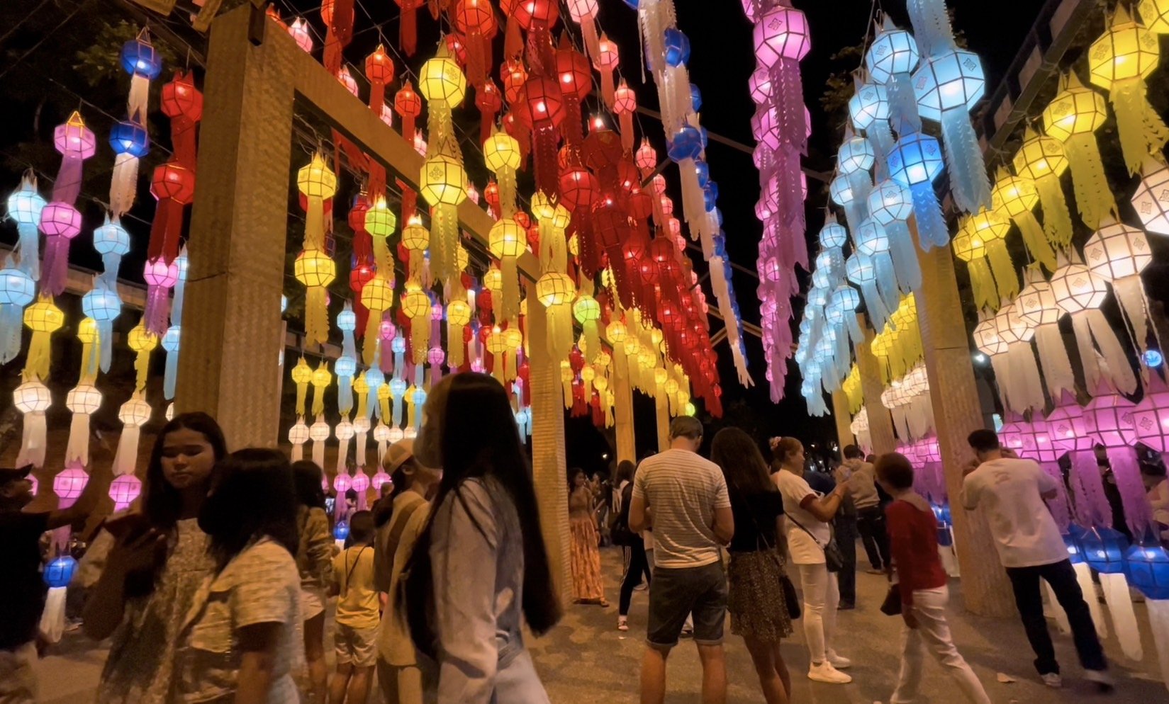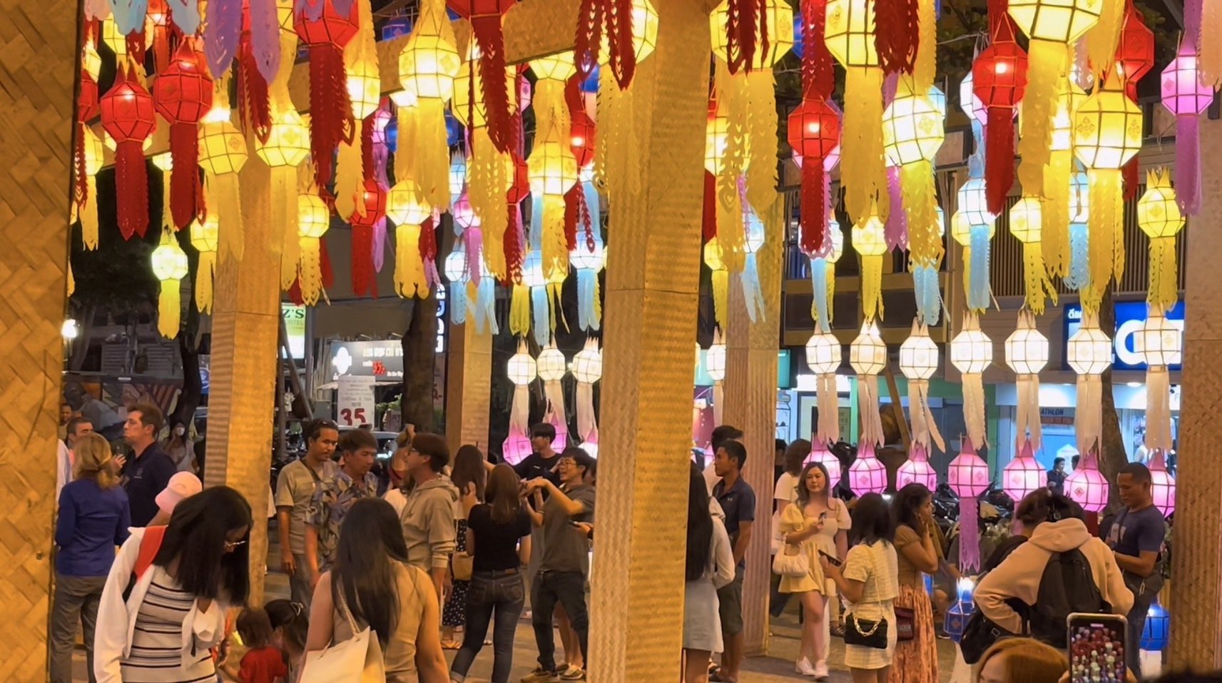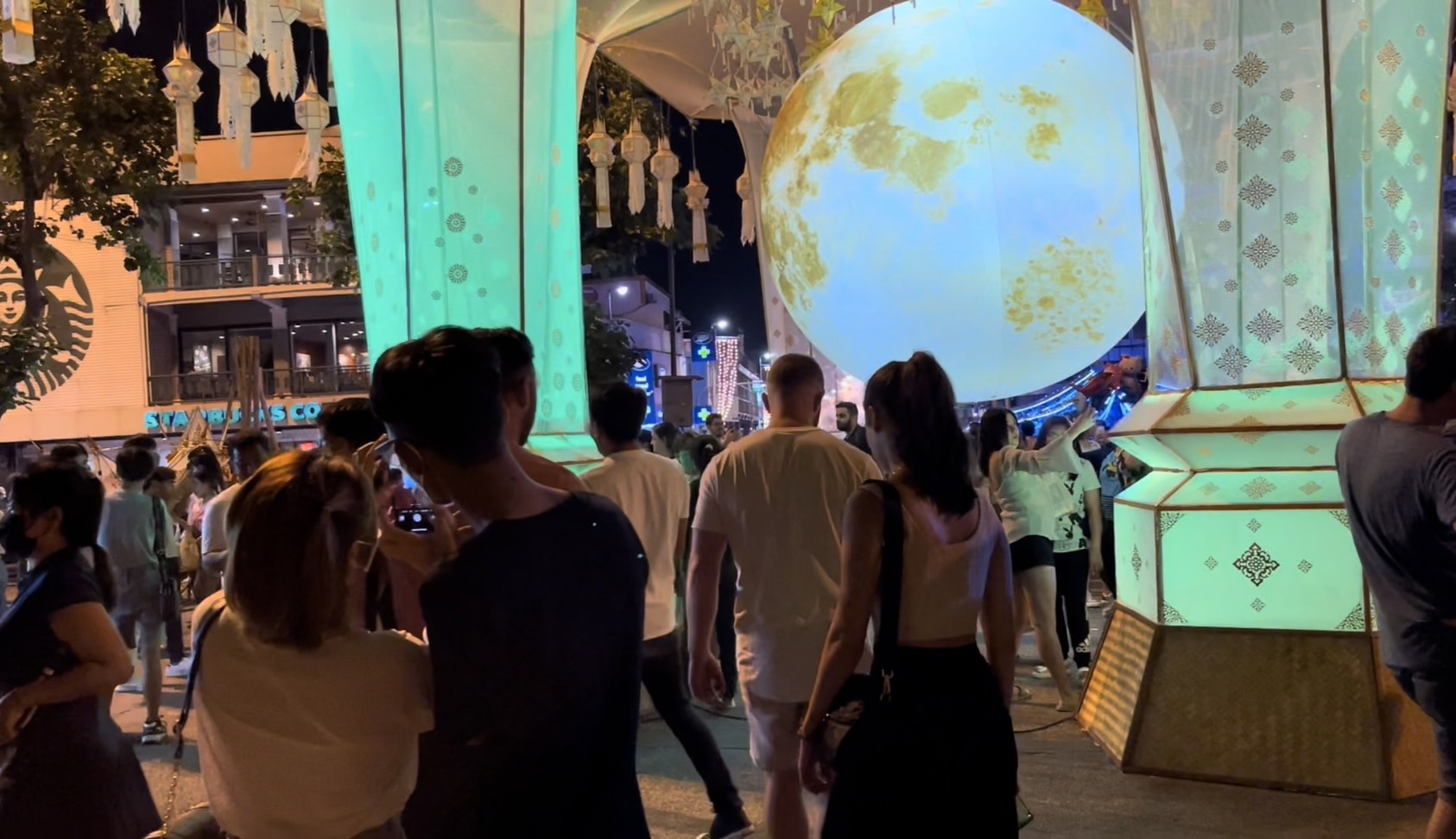 เชียงใหม่คึกคัก นทท.ทั้ง ไทย-เทศ เนืองแน่นต้อนรับเทศกาลยี่เป็ง วันแรกพรุ่งนี้ ด้านประตูท่าแพ คนแห่ชมแสงสีเต็มลาน
