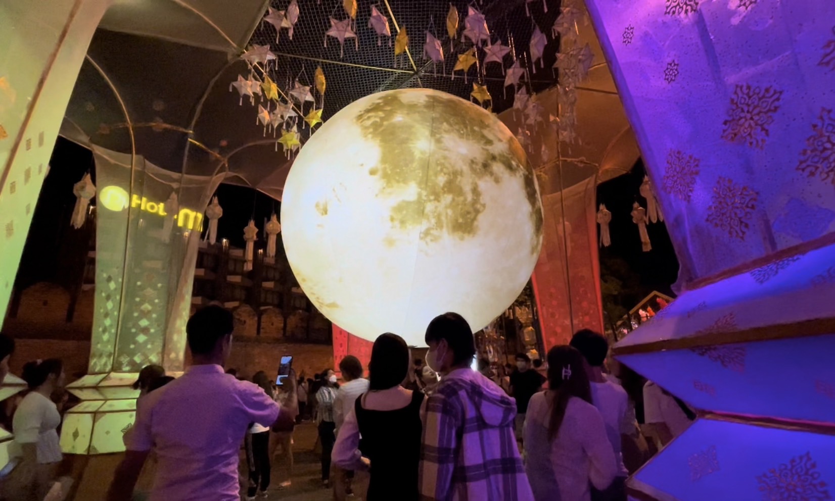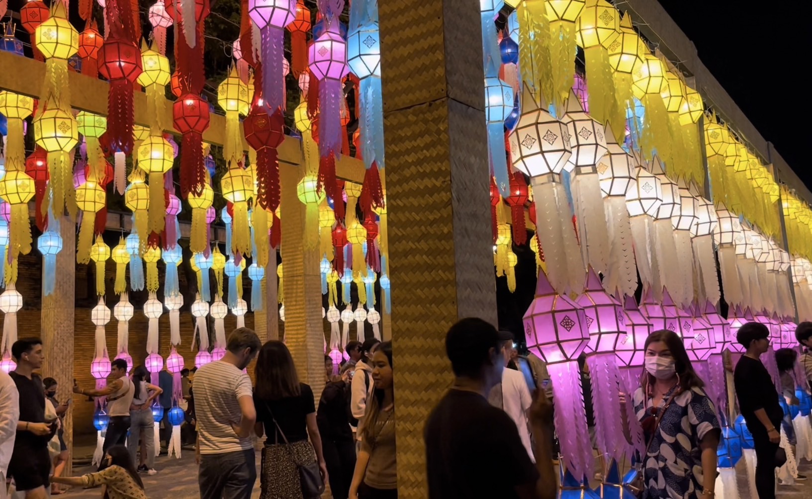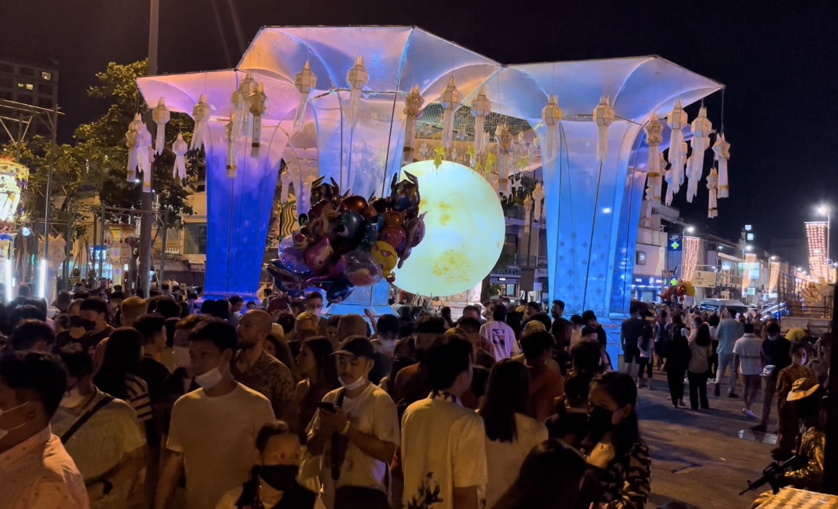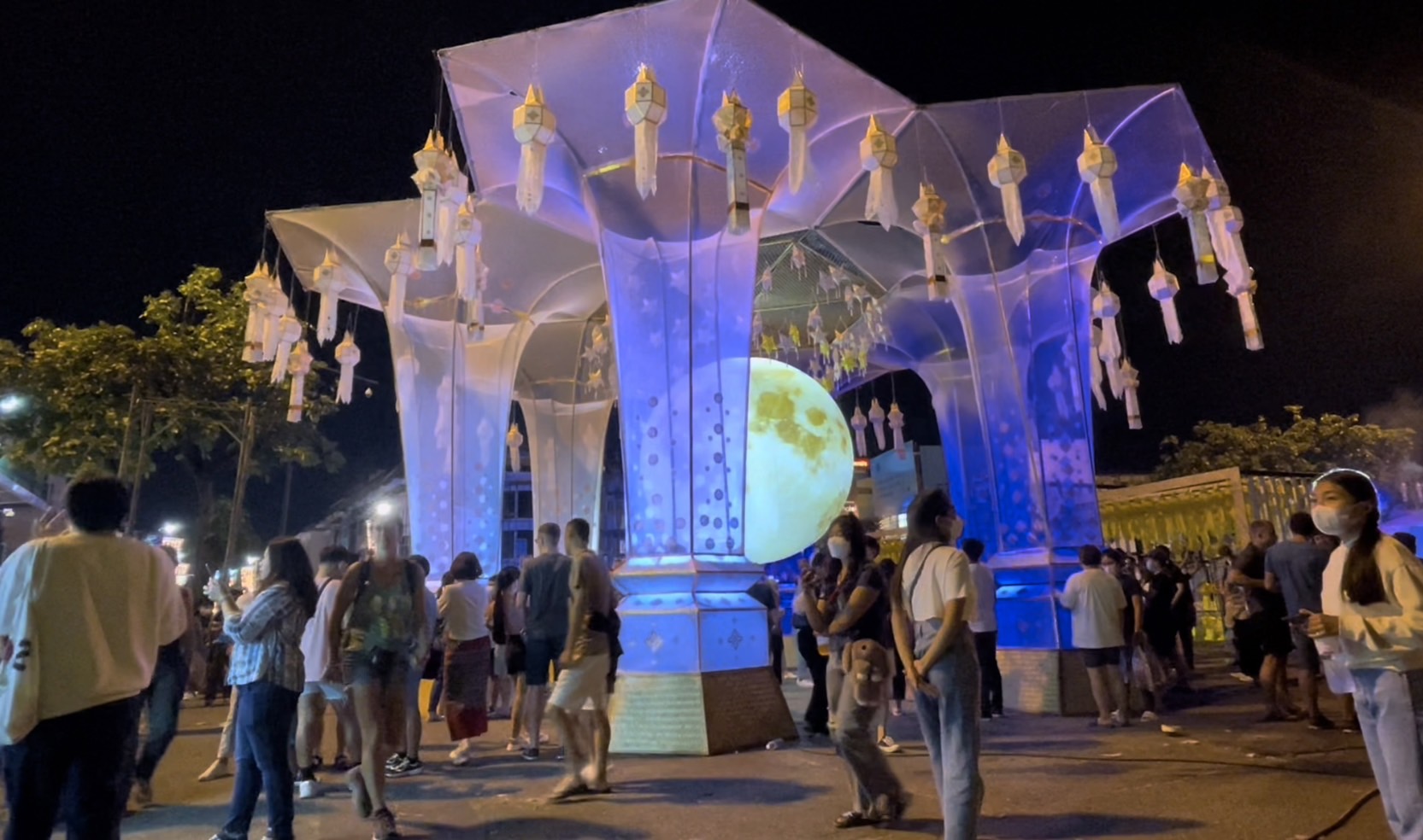 ช่วงค่ำวันนี้ (6 พ.ย.65) รายงานข่าวแจ้งว่า บรรยากาศยามค่ำคืนในตัวเมืองเชียงใหม่เต็มไปด้วยความคึกคัก ต้อนรับประเพณียี่เป็งที่จะเริ่มขึ้นในวันพรุ่งนี้ โดยที่ลานเอนกประสงค์ประตูท่าแพ จุดเช็คอินท่องเที่ยวกลางเมืองเชียงใหม่ นักท่องเที่ยวทั้งชาวไทยและต่างชาติพากันออกมาเดินเที่ยวชมและถ่ายภาพกับประติมากรรมโคมไฟและซุ้มโคมล้านนาที่นำมาตกแต่งบนลานภายใต้แนวคิด ‘แสงศิลป์ประทีปเบิกฟ้า ยี่เป็งเชียงใหม่’ เพื่อสืบสานประเพณียี่เป็ง