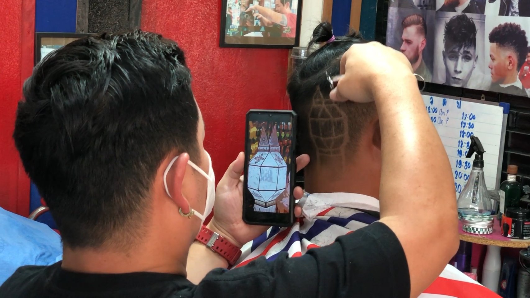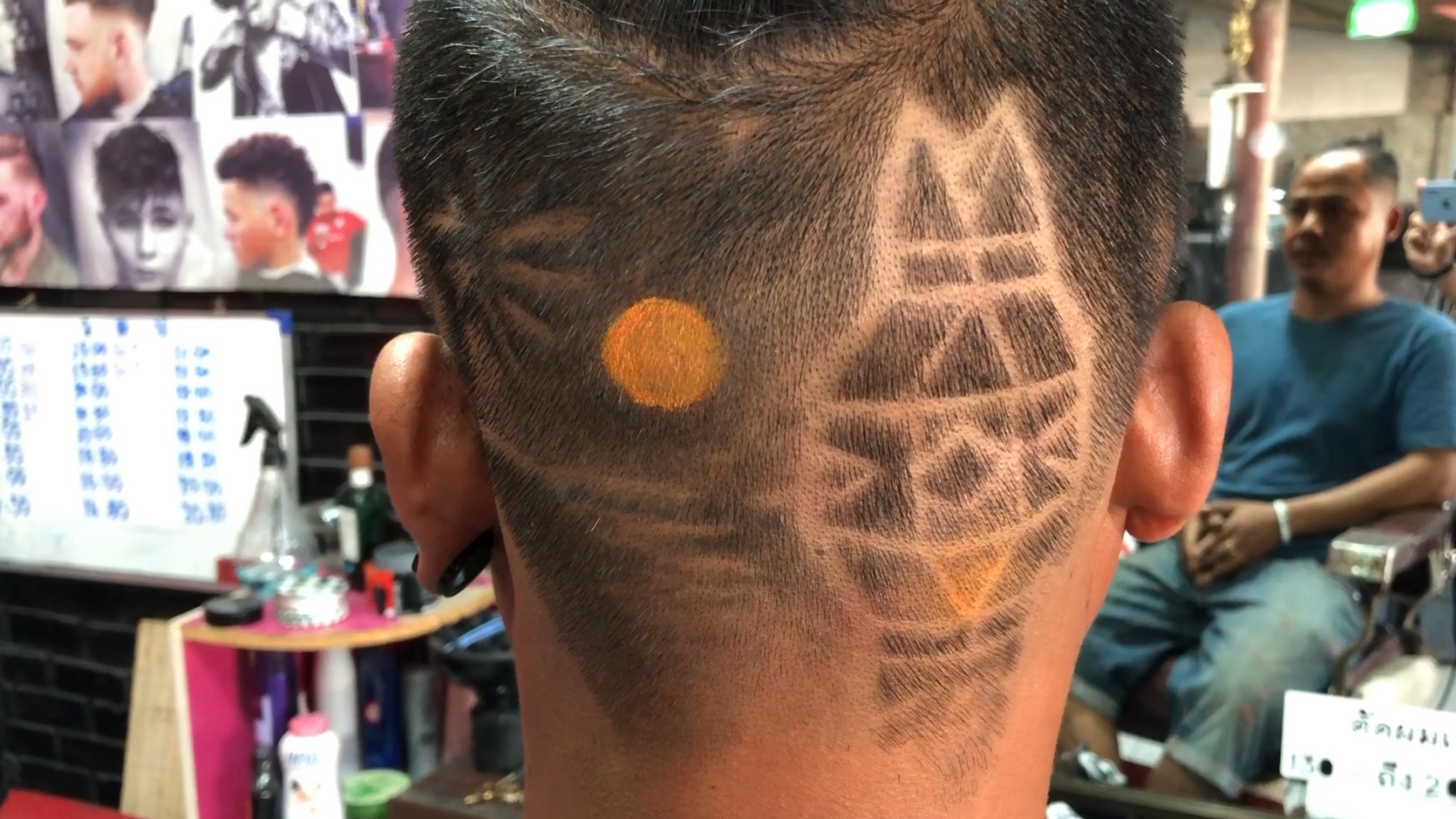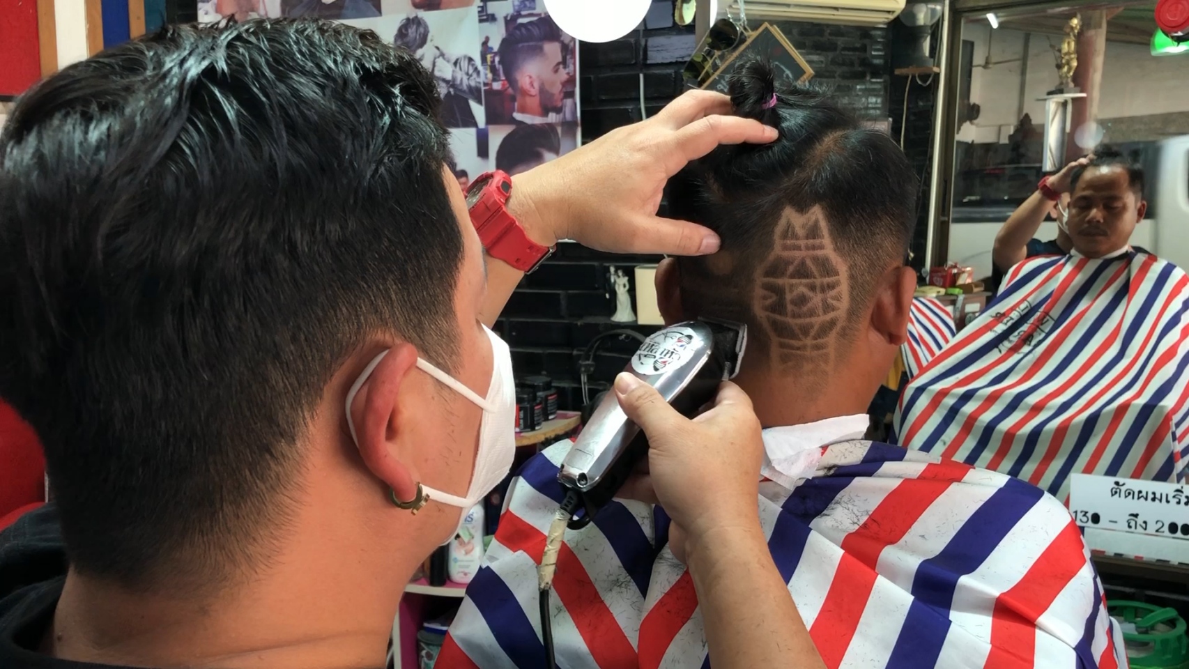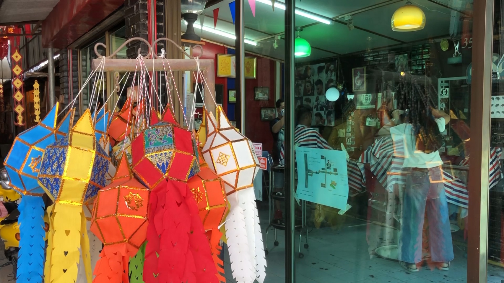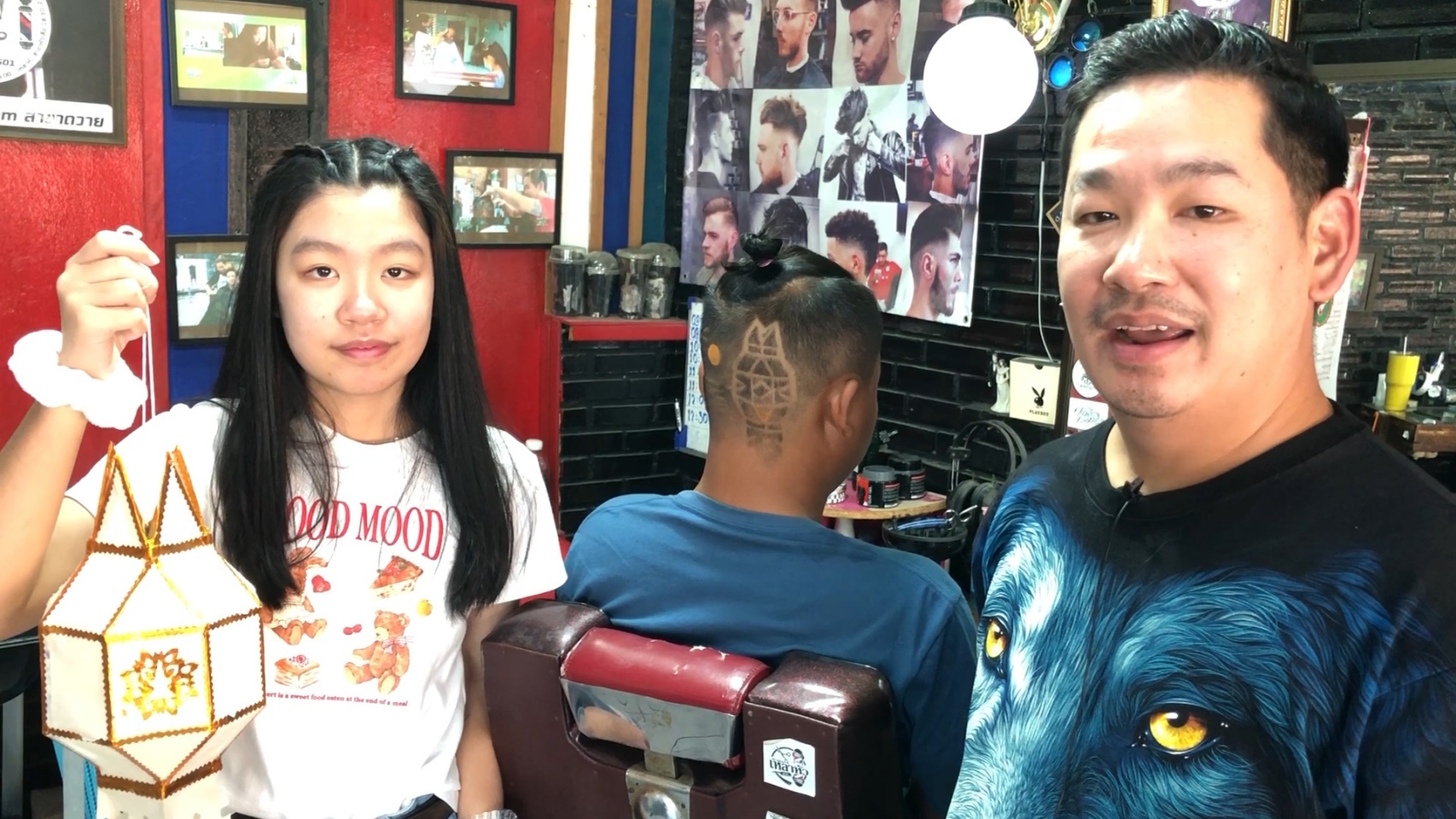 ขณะเดียวกันที่ร้านตัดผม “เหลาหัว” บ้านถวาย อำเภอหางดง จังหวัดเชียงใหม่ ของ “ช่างบุ๋ม” นายนพพร เชื้อประยูร อายุ 41 ปี ซึ่งช่างตัดผมฝีมือดีและมีชื่อเสียงเป็นที่ยอมรับในเรื่องการตัดผมแกะลายต่างๆ ทั้งลายซูเปอร์ฮีโร่จากภาพยนตร์ รวมทั้งสะท้อนประเด็นทางสังคม เช่น กรณียิงเสือดำ หรือกรณีบ้านป่าแหว่ง เป็นต้น ล่าสุดได้ร่วมกับลูกค้าที่ต้องการจะอยากจะสร้างสีสันในช่วงการจัดงานประเพณียี่เป็งปีนี้ ด้วยการตัดผมแกะลายเป็นรูปโคมยี่เป็งใส่ผางประทีปส่องสว่างแขวนอยู่ริมแม่น้ำ โดยมีดวงจันทร์เต็มดวงในคืนวันเพ็ญและดอกไม้ไฟบนท้องฟ้า