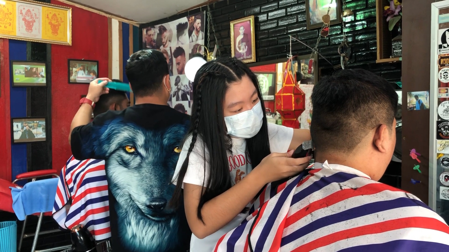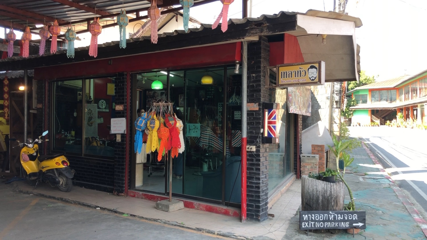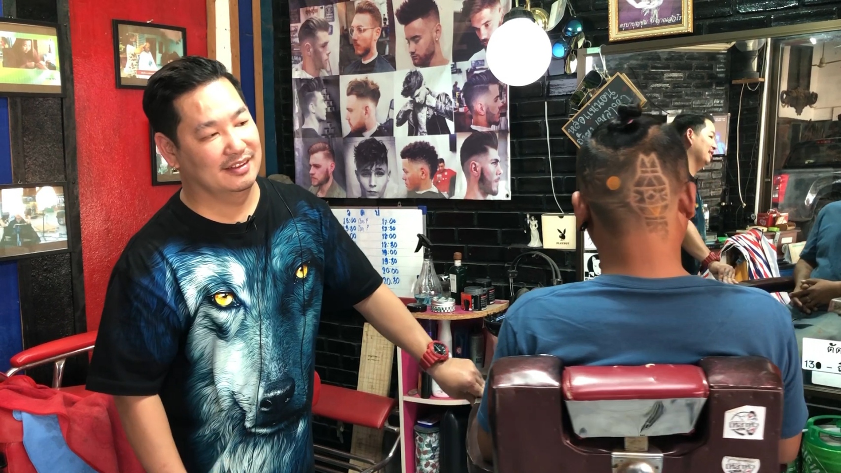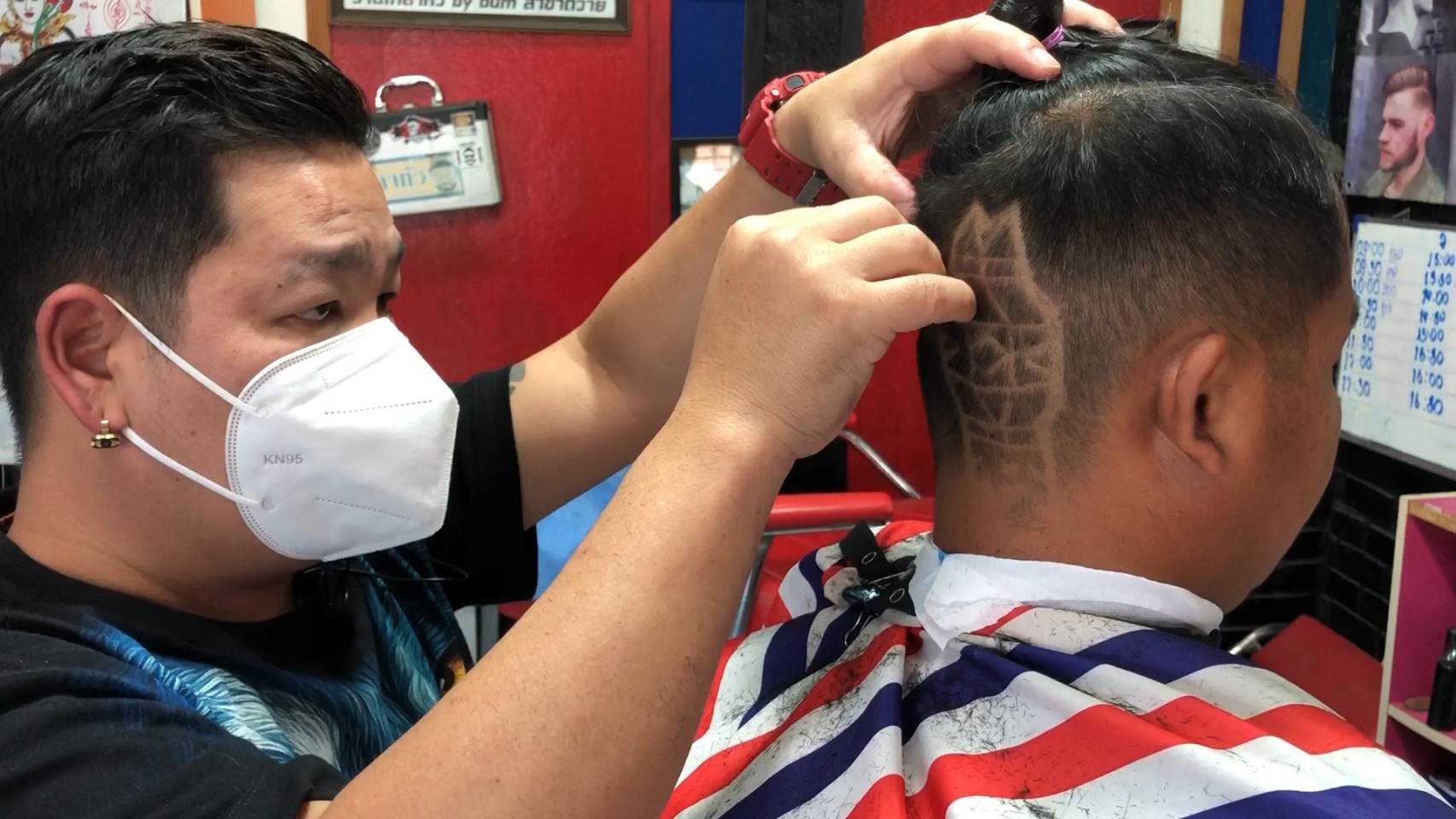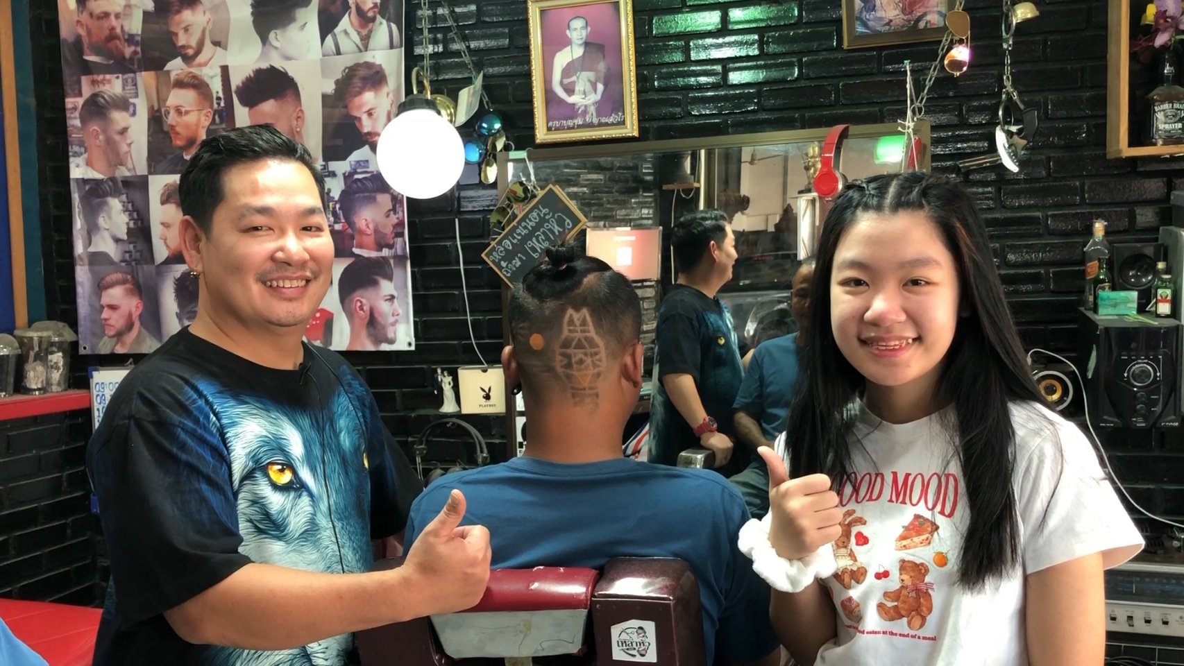 ขณะเดียวกันที่ร้านตัดผม “เหลาหัว” บ้านถวาย อำเภอหางดง จังหวัดเชียงใหม่ ของ “ช่างบุ๋ม” นายนพพร เชื้อประยูร อายุ 41 ปี ซึ่งช่างตัดผมฝีมือดีและมีชื่อเสียงเป็นที่ยอมรับในเรื่องการตัดผมแกะลายต่างๆ ทั้งลายซูเปอร์ฮีโร่จากภาพยนตร์ รวมทั้งสะท้อนประเด็นทางสังคม เช่น กรณียิงเสือดำ หรือกรณีบ้านป่าแหว่ง เป็นต้น ล่าสุดได้ร่วมกับลูกค้าที่ต้องการจะอยากจะสร้างสีสันในช่วงการจัดงานประเพณียี่เป็งปีนี้ ด้วยการตัดผมแกะลายเป็นรูปโคมยี่เป็งใส่ผางประทีปส่องสว่างแขวนอยู่ริมแม่น้ำ โดยมีดวงจันทร์เต็มดวงในคืนวันเพ็ญและดอกไม้ไฟบนท้องฟ้า