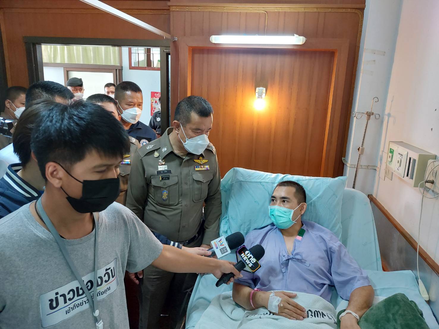 จากนั้น พล.ต.ท.ปิยะ ต๊ะวิชัย ผบช.ภ.5 พร้อมด้วยผู้บังคับบัญชา ได้ไปเยี่ยม ส.ต.ท.นิพัฒน์ฯ ที่ถูกอาวุธปืนยิงขณะเข้าทำการจับกุม ซึ่งพักรักษาตัวที่ รพ.ศูนย์ลำปาง และได้มอบกระเช้าและเงินช่วยเหลือค่ารักษาพยาบาลเพื่อเป็นขวัญและกำลังใจให้กับ ส.ต.ท.นิพัฒน์ฯ ต่อไป
