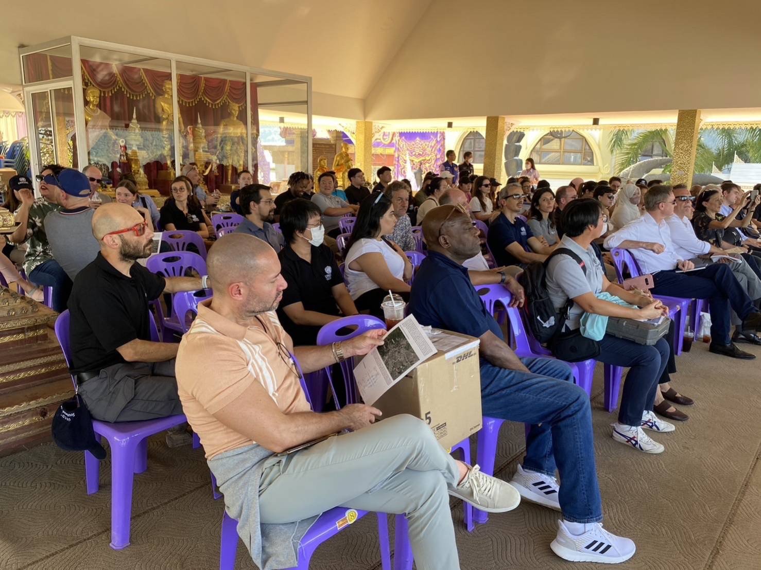 โดยนายวิชัย ไชยมงคล ลปส. ได้มอบหมายให้ วิทยาลัยป้องกันและปราบปรามยาเสพติดระหว่างประเทศ (วปส.) และศูนย์ประสานงานแม่น้ำโขงปลอดภัย (ศป.มข.) ร่วมต้อนรับคณะ UNODC จำนวน 85 ราย ซึ่งได้ศึกษาดูงานสถานการณ์การลักลอบค้ายาเสพติดตามแนวชายแดนและบริเวณสามเหลี่ยมทองคำ ภายใต้การประชุมหารืออย่างไม่เป็นทางการประจำปี และ เข้าเยี่ยมชมหอฝิ่นอุทยานแห่งชาติสามเหลี่ยมทองคำ และวิทยาลัยป้องกันและปราบปรามยาเสพติดระหว่างประเทศ (International Nacotics Control College) โดยผู้แทน วปส. และศป.มข. ได้ร่วมบรรยายสรุปและร่วมแลกเปลี่ยนสถานการณ์ยาเสพติดในพื้นที่สามเหลี่ยมทองคำ พัฒนาการและความท้าทายที่เกี่ยวข้องตามแนวชายแดน ตลอดจนแนวทางและความคืบหน้าของการพัฒนา วปส. ร่วมด้วย