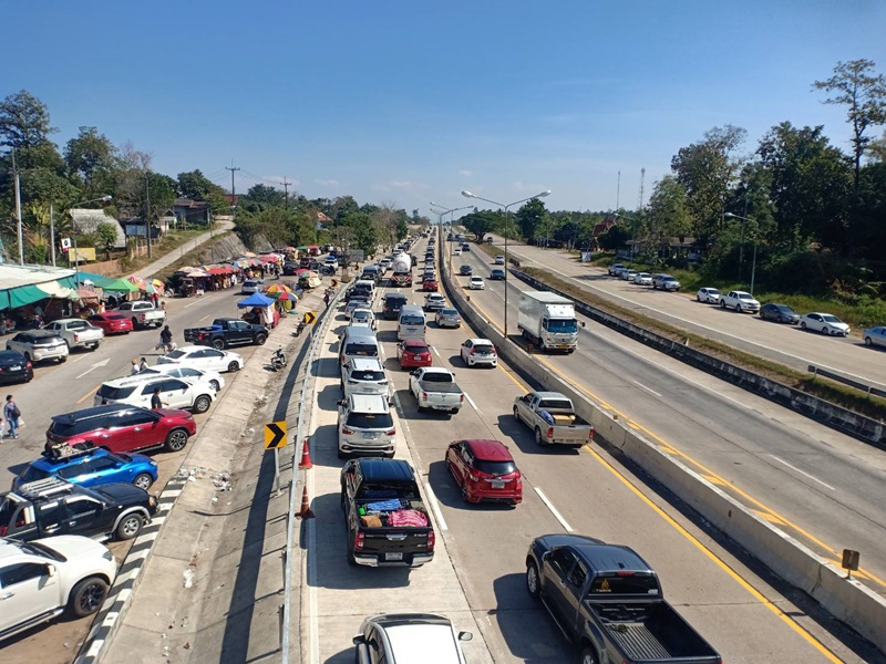 วันหยุดยาววันสุดท้ายถนนลำปาง-เชียงใหม่ การจราจรขาเข้ารถติดยาวหลายกิโลเมตร นักท่องเที่ยวแห่กลับบ้านตำรวจเร่งระบายรถ