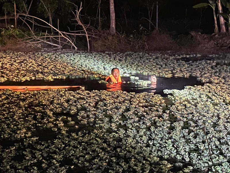 ส่วนเจ้าของบ้านชื่อป้าแก้ว อายุ 60 ปี ไม่อยู่ในที่เกิดเหตุ และทางกู้ชีพ ทต.ชมภู ได้รับแจ้งจากชาวบ้านว่าได้ยินเสียงผู้หญิง ร้องขอความช่วยเหลือในหนองน้ำสวนลำไย ห่างจากที่เกิดเหตุประมาณ 300 เมตร จึงรีบไปยังที่รับแจ้ง พบว่าหนองน้ำมีความลึกมาก พบผู้หญิงชื่อว่าป้าแก้ว ยืนอยู่บนตอไม้ใต้น้ำโผล่แต่ศรีษะ จึงรีบช่วยเหลือนำร่างขึ้นมาอยู่ในสภาพอิดโรย มีบาดแผลที่คิ้วและด้านหลังถูกไฟลวกได้รับบาดเจ็บ จึงนำตัวส่ง รพ.สารภี ส่วนสาเหตุในเบื้องต้นทราบว่าป้าแก้ว มีอาชีพรับชื้อของเก่าภายในบ้านมีของเก่าเต็มไปหมดล้วนเป็นเชื้อเพลิงอย่างดี และอาจเกิดจากไฟฟ้าลัดวงจร