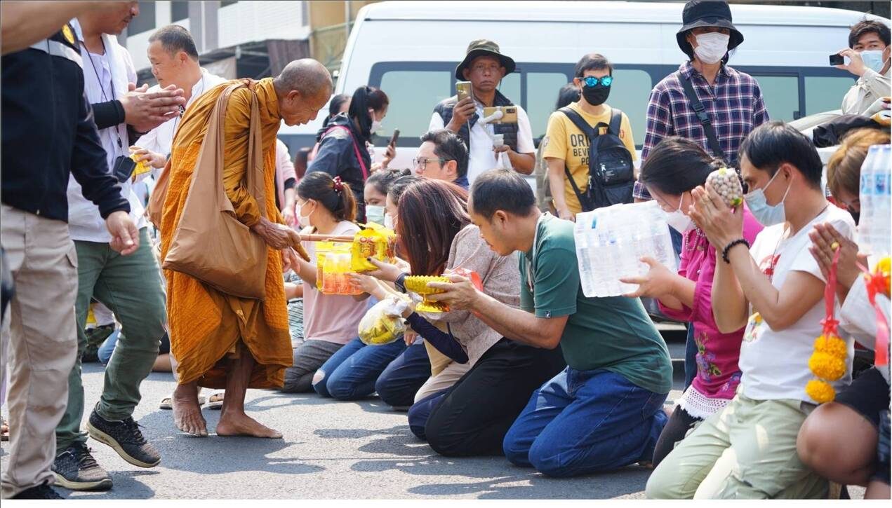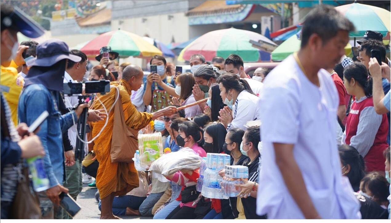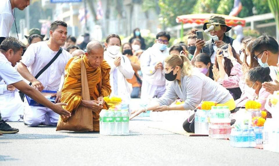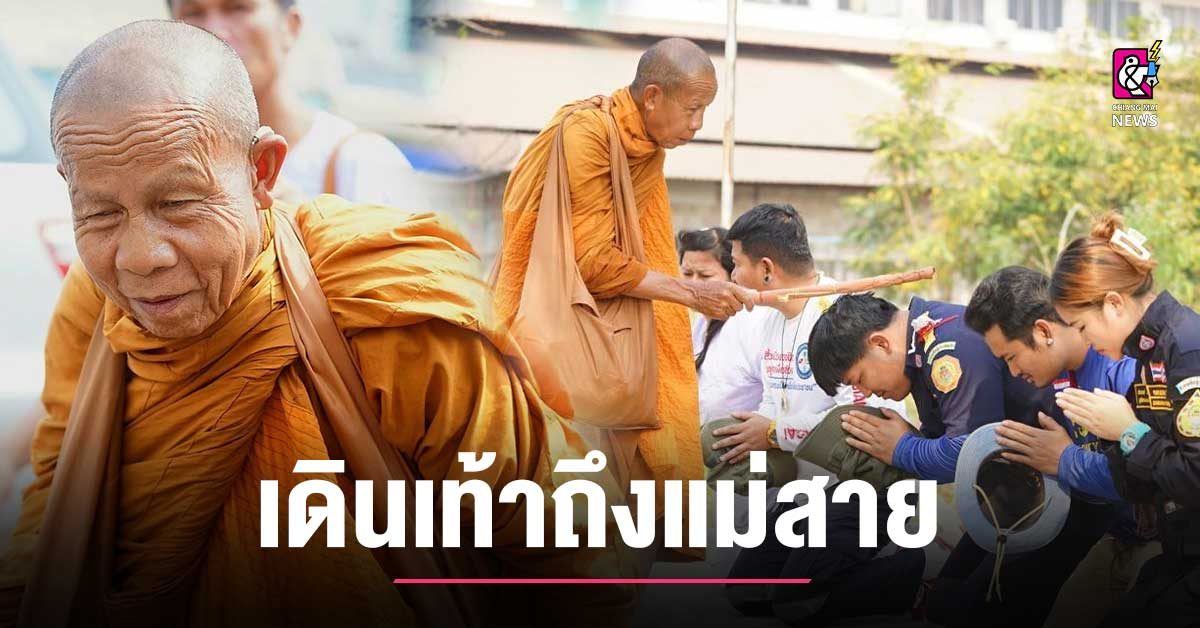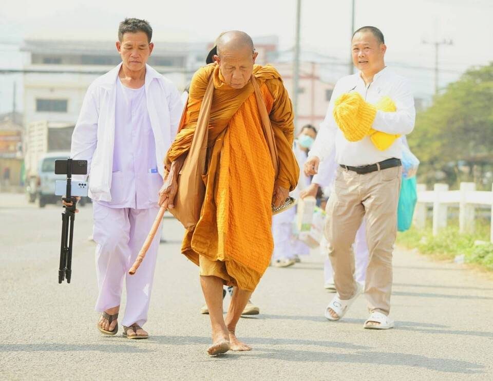 วันที่ 14 ก.พ. 66 ผู้สื่อข่าวรายงานว่า หลวงตาบุญชื่น ปัญญาวุฑโฒ อายุ 74 ปี 13 พรรษา ซึ่งเดินธุดงค์มาจาก อ.หาดใหญ่ จ.สงขลา มาถึงเขตอำเภอแม่สาย จ.เชียงราย โดยเมื่อคืนที่ผ่านมาได้แวะพักจำวัดที่โรงเรียนบ้านจ้อง ต.โป่งผา อ.แม่สาย จ.เชียงราย และได้มีพุทธศาสนิกชนที่ทราบข่าวได้พากันมารอกราบ บางส่วนก็นำเอาน้ำดื่มหรืออาหารแห้งอื่นๆ มารอถวายให้กับหลวงตา ในช่วงค่ำก็มีชาวบ้านมาร่วมสวดมนต์ทำวัตรเย็นและรอฟังธรรมเทศนาจากหลวงตา