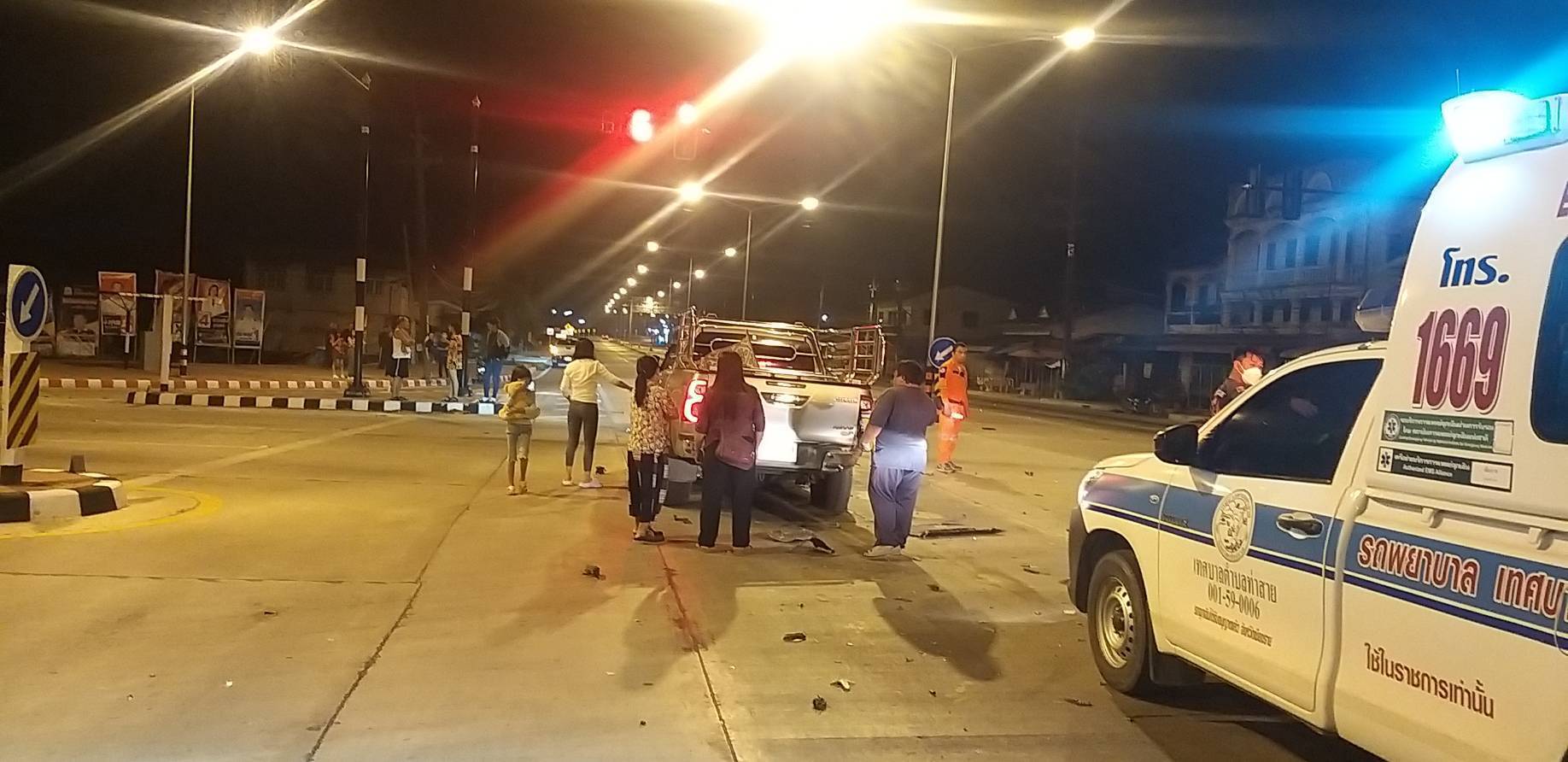 แรงเร็วทะลุไฟแดง! กระบะพุ่งชนท้ายรถกำลังติดไฟแดง จนล้อหน้าซ้ายหลุด แต่ยังขับหลบหนีกว่า 35 กม.