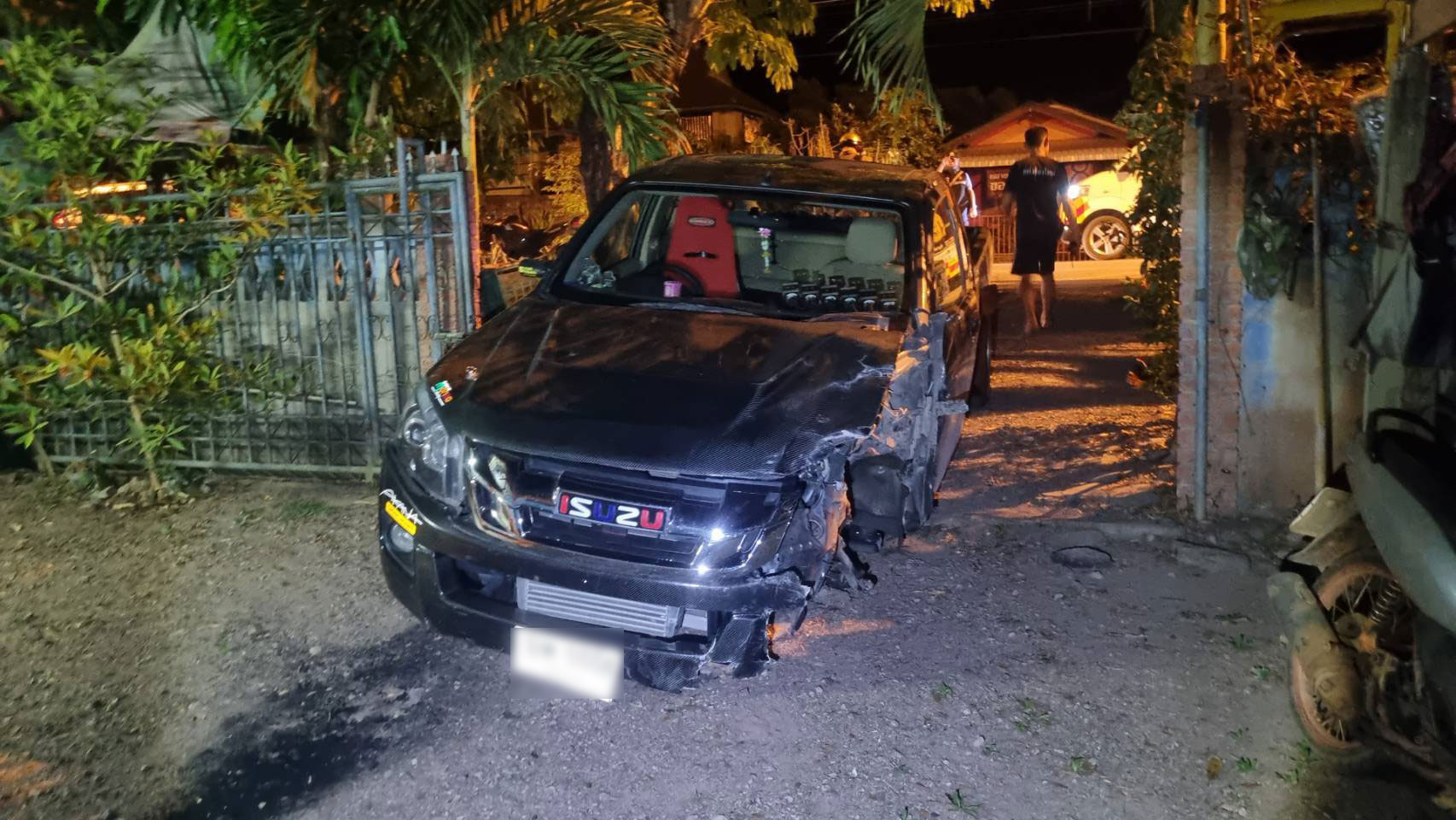 ด้านรถคันก่อเหตุ เจ้าหน้าที่ได้ไล่ติดตามไปจนพบว่า รถยนต์คันดังกล่าวได้เลี้ยวซ้ายเข้าไปในถนนสายรองพื้นที่บ้านโป่งช้าง ม.6 ต.เชียงเคี่ยน อ.เทิง จ.เชียงราย และไปจนมุมที่บ้านหลังหนึ่ง ห่างทางแยกมาประมาณ 100 ม. พบรถยนต์กระบะยี่ห้ออีซูซุ ดีแม๊กซ์ สีดำ ทะเบียน เชียงราย พื้นถนนมีร่องรอยถูกครูดเป็นทางยาวมาจนถึงหน้าบ้านหลังดังกล่าว ส่วนผู้ขับขี่เป็นเพศชาย อายุประมาณ 25-30 ปี ในเบื้องต้นปฏิเสธว่าไม่ได้ไปบริเวณที่เกิดเหตุ แต่เจ้าหน้าที่มีหลักฐานกล้องวงจรปิดในที่เกิดเหตุ และตามเส้นทางหลบหนี จึงควบคุมตัวไปส่งพนักงานสอบสวน สภ.เมืองเชียงราย เพื่อไปสอบสวนเพิ่มเติมและตรวจวัดแอลกอฮอล์ในร่างกาย