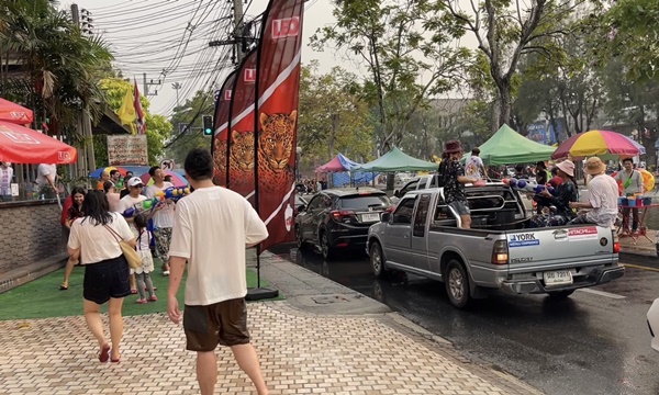 ส่วนที่บริเวณถนนสายท่าแพและถนนสายลอยเคราะห์นั้นก็พบว่ามีบรรยากาศที่คึกคักขึ้นจากเมื่อวานเป็นอย่างมาก โดยในวันนี้พบว่า มีกลุ่มคนทั้งชาวไทยและชาวต่างชาติ พากันออกมาเล่นน้ำมากขึ้นหลายเท่า ซึ่งเป็นภาพบรรยากาศที่ไม่เห็นมานานกว่า 3 ปี จึงทำให้คาดว่า ในช่วงเทศกาลสงกรานต์ ที่จะเริ่มต้นในวันพรุ่งนี้ (13 เม.ย.66) ไปจนถึงวันที่ 15 เม.ย.66 นี้จะมีความคึกคึกมากที่สุดในรอบ 3 ปีที่ผ่านมา