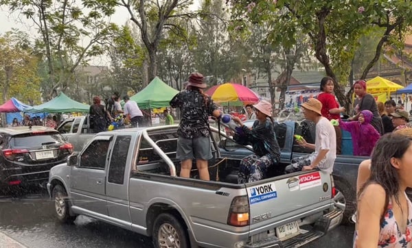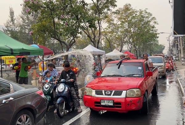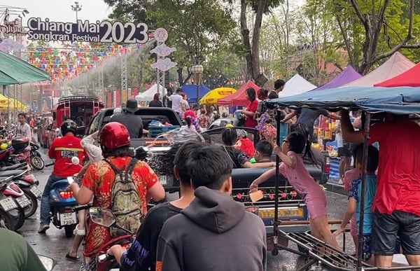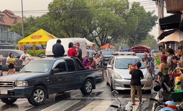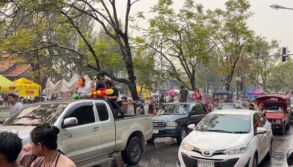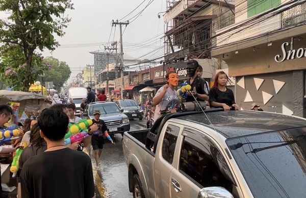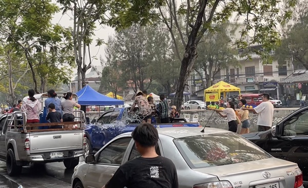 ขณะที่ในวันนี้ตลอดช่วงบ่ายที่ผ่านมาพบว่า ประชาชนและนักท่องเที่ยวจำนวนมาก ต่างพากันสะพายปืนฉีดน้ำ อาวุธคู่กาบ รวมไปถึงบางรายมีการนำถังน้ำขึ้นท้ายรถกระบะ แล้วพากันนั่งท้ายรถขับวนไปรอบคูเมืองเพื่อเล่นน้ำกันอย่างชุ่มฉ่ำ จนทำให้โดยรอบพื้นที่มีการจราจรที่ค่อนข้างติดขัด อีกทั้งบางจุดก็มีการจัดซุ้มเปิดเพลงเต้นกันอย่างสนุกสนาน รวมไปถึงโดยรอบคูเมืองก็มีบรรดาพ่อค้า แม่ค้า จัดซุ้มขายของริมคูเมืองและเล่นน้ำกันหนาตาด้วยเช่นกัน