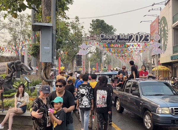 ช่วงเย็นวันนี้ (12 เม.ย.66) บรรยากาศในตัวเมืองเชียงใหม่ โดยเฉพาะบริเวณรอบคูเมือง เป็นไปอย่างคึกคัก จากการที่มีประชาชนและนักท่องเที่ยว ทั้งชาวไทยและต่างชาติ พากันออกมาเล่นสาดน่ำกันอย่างสนุกสนาน ถึงแม้ว่าวันนี้จะยังไม่ไม่เข้าสู่ช่วงเทศกาลแบบเต็มรูปแบบก็ตาม แต่ก็ถือเป็นวันอุ่นเครื่องที่ทุกคนต่างพร้อมใจกันที่จะเปียกชุ่มฉ่ำ และเล่นสาดน้ำกันอย่างเต็มที่แล้ว ซึ่งเป็นผลพวงมาจากสภาพอากาศที่ร้อนจัด และจากการที่ในช่วง 2-3 ปี ที่ผ่านมา มีผลกระทบของหารแพร่ระบาดเชื้อไวรัสโควิด ทำให้เทศกาลสงกรานต์ต้องเงียบเหงาไป แต่ในปีนี้ จากการที่มีการจัดประเพณีแบบเต็มรูปแบบ สถานการณ์กลับสู่ภาวะปกติ ทำให้หลายๆ คนทั้งหนุ่มสาว และชาวต่างชาติ ที่อัดอั้นจากการที่ไม่ได้ร่วมเล่นน้ำ พากันออกมาจัดเต็มกันในวันนี้
