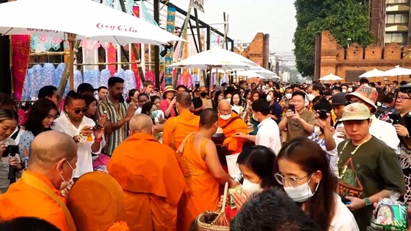 พ่อเมืองเชียงใหม่นำประชาชนร่วมทำบุญตักบาตรวันสังขารล่องตามประเพณีปี๋ใหม่เมือง