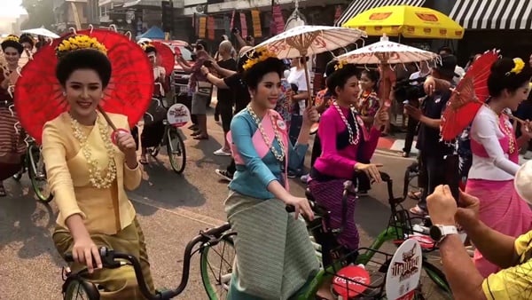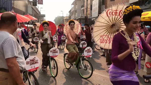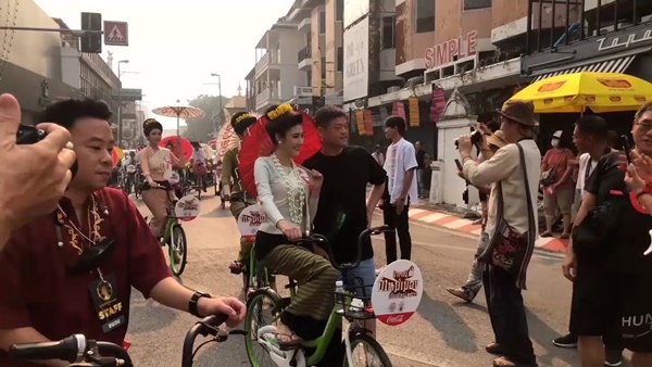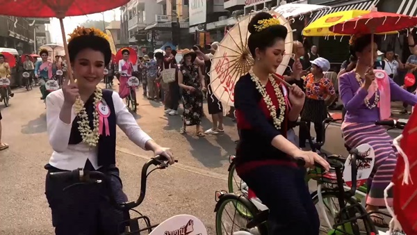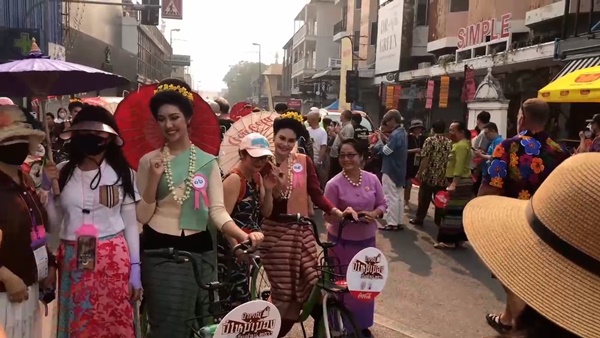 โดยที่ผ่านมา 3 ปีจากสถานการณ์โควิดเชียงใหม่ต้องลดกิจกรรมหลายอย่างลงไป แต่ปีนี้สถานการณ์คลี่คลายลงจึงได้กลับมาจัดงานได้อย่างเต็มรูปแบบ โดยพิธีเปิดงานป๋าเวณีปี๋ใหม่เมืองเชียงใหม่ประจำปี 2566 อย่างเป็นทางการที่ลานเอนกประสงค์ข่วงประตูท่าแพท่ามกลางชาวเชียงใหม่ นักท่องเที่ยวชาวไทย และนักท่องเที่ยวทั้งจากฝั่งยุโรป และชาวจีนที่กลับที่เที่ยวเชียงใหม่อย่างคึกคักอีกครั้ง ออกมาร่วมชมงานพิธีเปิด นอกจากขบวนล้านนาไทยในอดีต ที่สื่อถึงศิลปวัฒนธรรม และเอกลักษณ์ของชาวล้านนา ไฮไลท์สำคัญ คือ ขบวนแม่ญิงขี่รถถีบกางจ้อง หรือ ผู้หญิงปั่นรถจักรยานและก๋างจ้อง ที่มีหญิงสาวในชุดพื้นเมืองล้านนา ถือร่ม หรือ จ้อง และปั่นรถถีบ โดยปีนี้มีหญิงสาวเข้าร่วมกิจกรรมการประกวดแม่ญิ๋งขี่รถถีบก๋างจ้องกว่า 50 คนด้วยกัน