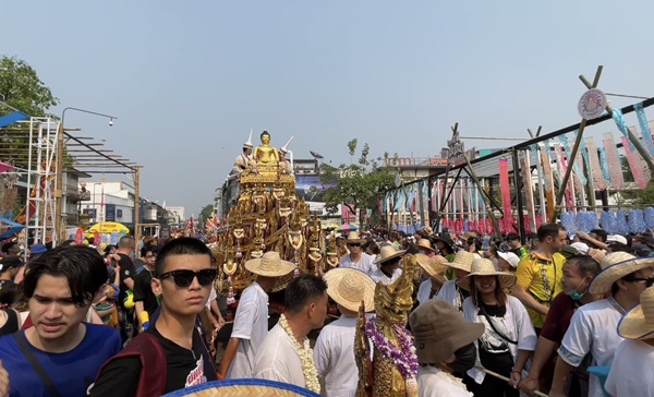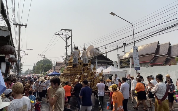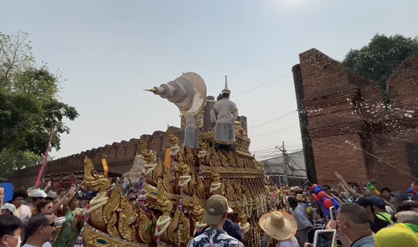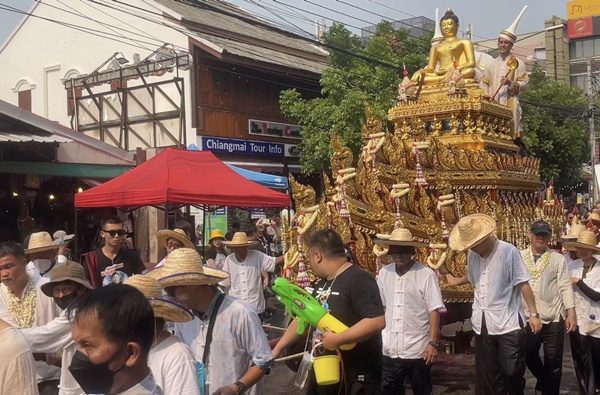 เมื่อช่วงบ่ายเวลาประมาณ 15.00 น. วันนี้ (13 เม.ย.66) ที่บริเวณลานเอนกประสงค์ข่วงประตูท่าแพ อ.เมืองเชียงใหม่ ประชาชนและนักท่องเที่ยวทั้งชาวไทยและต่างชาติ ต่างพร้อมใจกันร่วมประเพณีสงกรานต์กันอย่างสนุกสนาน พร้อมทั้งร่วมสรงน้ำพระพุทธสิหิงค์ พระพุทธรูปศักดิ์สิทธิ์คู่บ้านคู่เมืองเชียงใหม่ และพระพุทธรูปอีกหลายองค์ที่ตั้งแต่ช่วงเช้าวันนี้ได้มีพิธี อัญเชิญจากวัดพระสิงห์วรมหาวิหาร เพื่อประดิษฐานบนรถบุษบก และจะมีการเคลื่อนขบวนไปตามตัวเมืองเชียงใหม่ ก่อนจะเคลื่นขบวนเข้ามายังบริเวณลานเอนกประสงค์ข่วงประตูท่าแพ เพื่อให้ประชาชนและนักท่องเที่ยว ที่มาร่วมเทศกาลสงกรานต์ได้ทำการร่วมกันสรงน้ำเพื่อความเป็นศิริมงคลต่อตัวเองและครอบครัวในวาระดิถีขึ้นปีใหม่ของไทยและชาวล้านนา