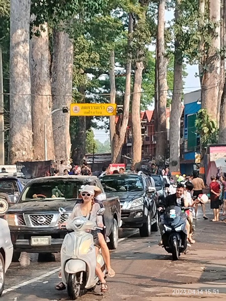 ระหว่างวันที่ 14-15 เม.ย. 2566 นี้ถนนสายเก่าเชียงใหม่-ลำพูน หรือ ถนนสายต้นยาง ช่วงเขต อ.สารภี ตลอดสาย มีการเล่นน้ำสงกรานต์กันอย่างเนืองแน่น ทั้งสองฟากฝั่งถนน บนถนนก็เต็มไปด้วยยวดยานพาหนะแทบไม่มีการเคลื่อนตัวเลย จึงเป็นอุปสรรคสำหรับผู้ที่จะเดินทางไปธุระยังพื้นที่อื่นๆ
