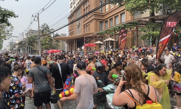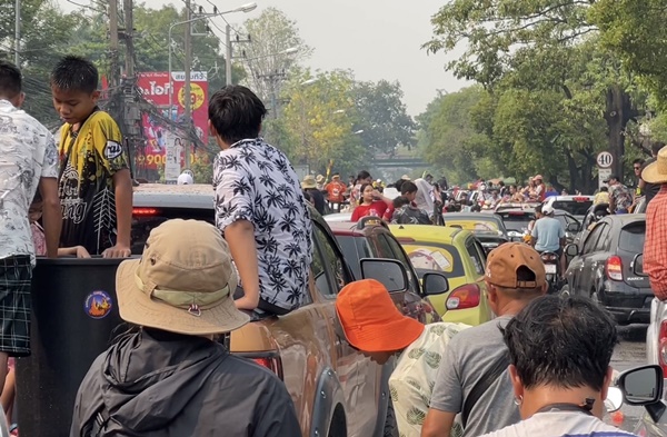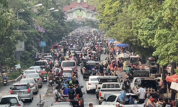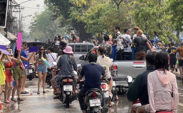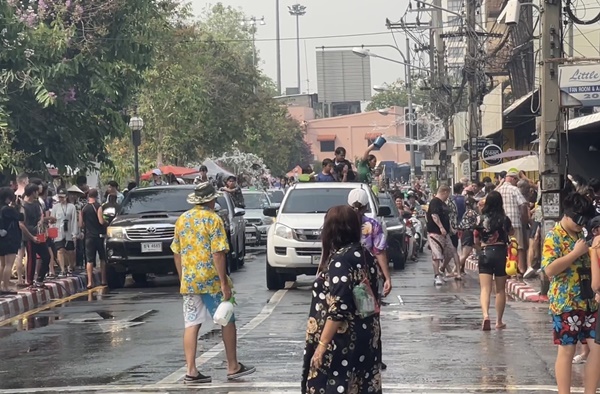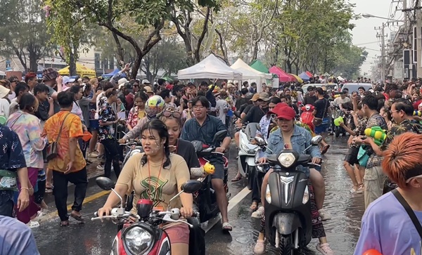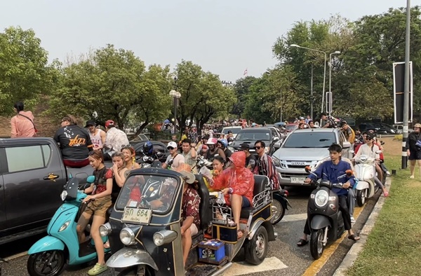ช่วงบ่ายของวันที่สาม (15 เม.ย.66) ซึ่งเป็นวันสุดท้ายของเทศกาลสงกรานต์ หรือปีใหม่เมืองเจียงใหม่ บรรยากาศยังคงคึกคักท่ามกลางสภาพอากาศที่ร้อนจัดแตะ 41 องศาเซลเซียส แต่ประชาชนและนักท่องเที่ยวทั้งวัยรุ่นหนุ่มสาว ก็ไม่หวั่นกับสภาพอากาศ พากันขับรถจักรยานยนต์ สะพายปืนฉีดน้ำ และอีกหลายรายที่นั่งท้ายรถกระบะเล่นสาดน้ำกันอย่างสนุกสนาน จนทำบริเวณรอบคูเมืองเชียงใหม่นั้น คึกคักเป็นอย่างมาก อีกทั้งยังมีจำนวนรถทั้งรถยนต์และรถจักรยานยนต์ ปริมาณมหาศาลเนืองแน่นโดยรอบ ซึ่งเป็นประชาชนและนักท่องเที่ยวที่ต่างพร้อมในกันออกมาเล่นสาดน้ำสงกรานต์ด้วยใบหน้าที่ยิ้มแย้มแจ่มใสมีความสุขสนุกสนานกันทุกคน