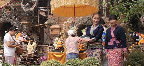 สีสันความสวยงามแห่งประเพณีปี๋ใหม่เมือง ชาวเชียงใหม่และนักท่องเที่ยวเข้าวัดทำบุญถวายตุงรับศักราชใหม่