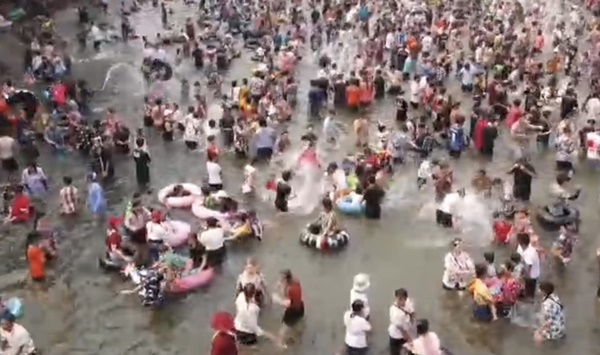 สงกรานต์ยังไม่จบ เขื่อนแม่กวงเปิดพื้นที่ให้ประชาชนเล่นสาดน้ำต่อเนื่องอีกสองวัน คนนับหมื่นแห่คลายร้อน