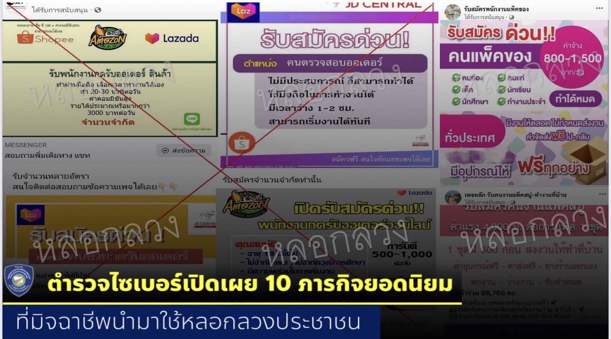 ทั้งนี้จากการตรวจสอบพบว่ามี 10 ภารกิจหรืองานเสริมยอดนิยมที่นำมาใช้หลอกลวงประชาชน ดังนี้