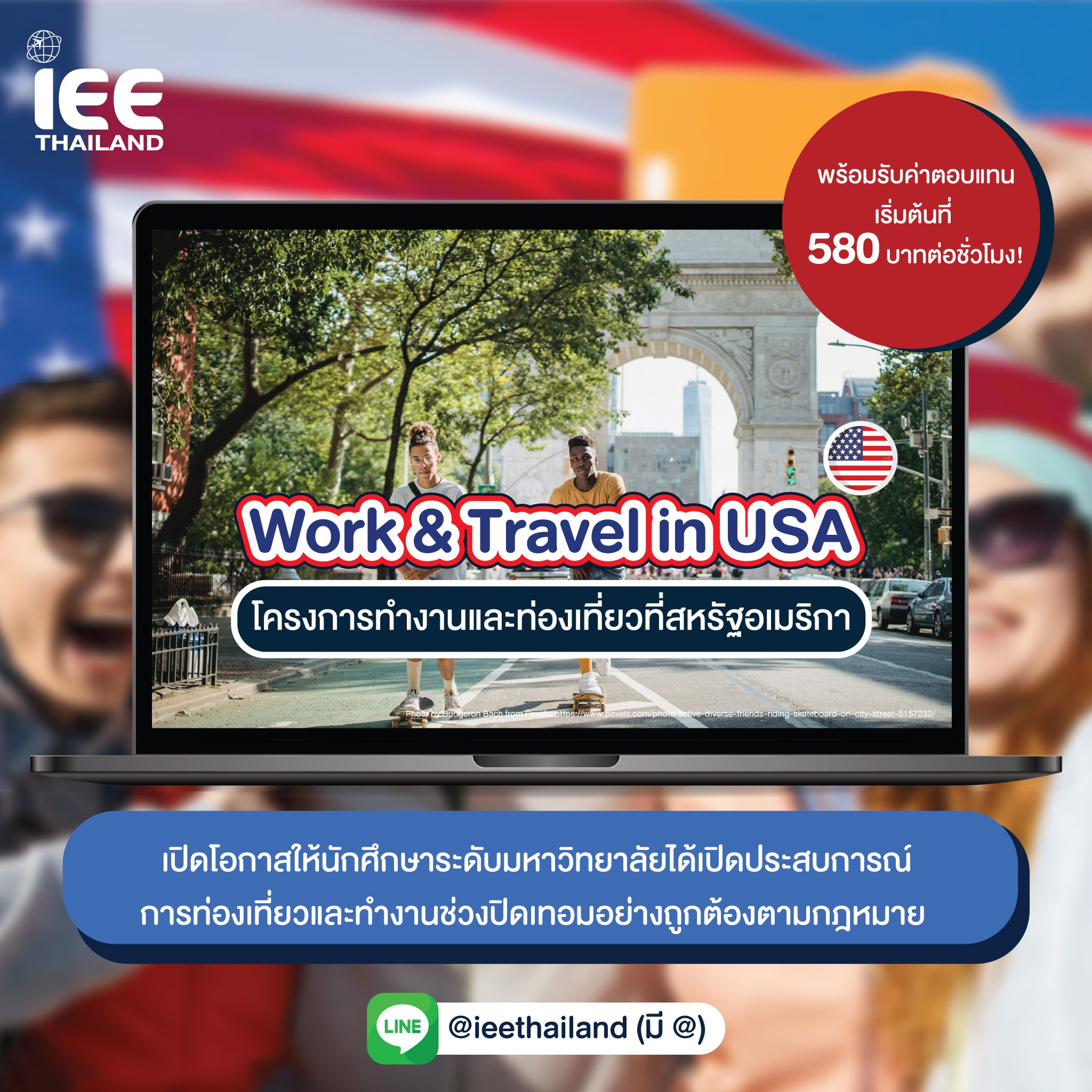 เปิดรับนักศึกษาระดับชั้นปริญญาตรี/โท ที่อายุไม่เกิน 26 ปี ไปทำงานและท่องเที่ยวอย่างถูกต้องตามกฎหมายในช่วงปิดเทอมใหญ่ พร้อมรับค่าตอบแทนเริ่มต้นที่ 580 บาท ต่อชั่วโมง