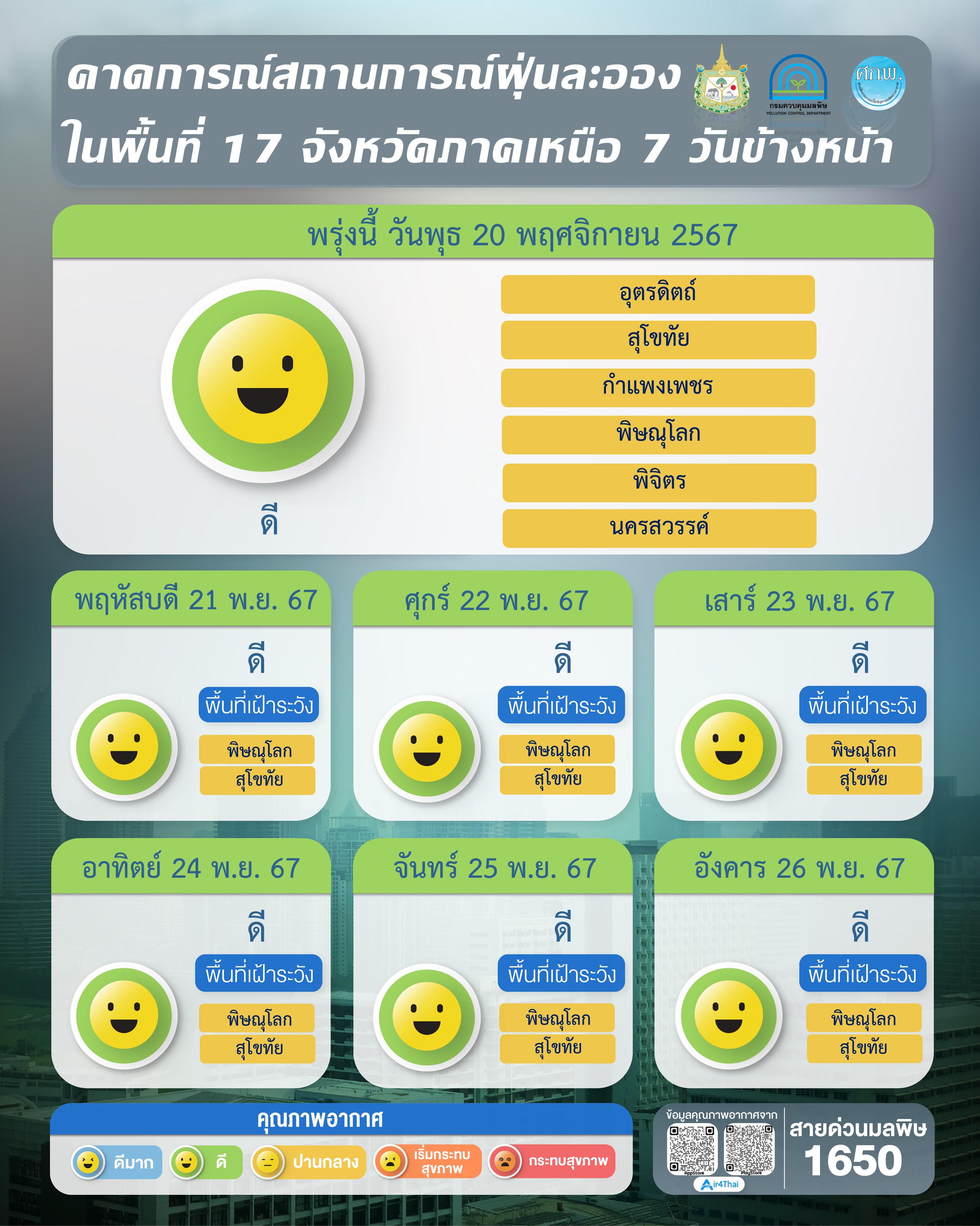 ภาคเหนือ ภาพรวมอยู่ในเกณฑ์ดี ตรวจวัดได้ 9.8 – 33.8 มคก./ลบ.ม.