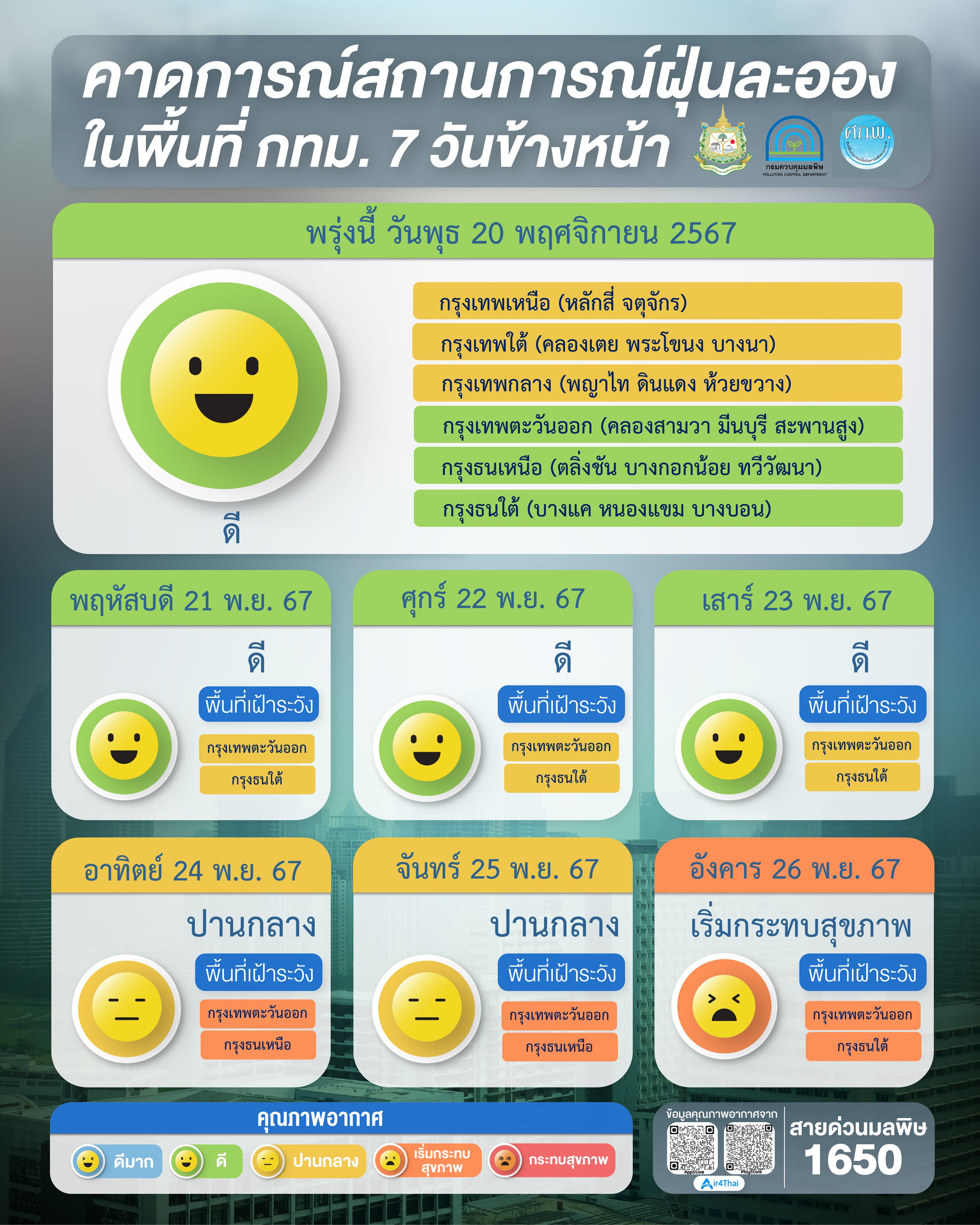 -> ประชาชนทั่วไป : ควรเฝ้าระวังสุขภาพ ลดเวลาการทำกิจกรรมกลางแจ้ง หรือใช้อุปกรณ์ป้องกันตนเอง